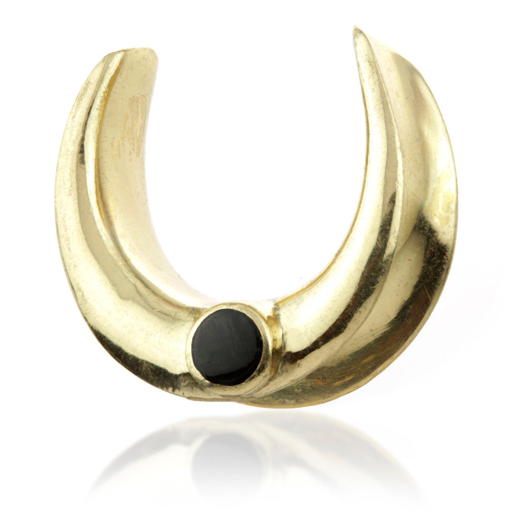 Brass Saddle Plug with Black Shell Sizes: 6mm - 40mm Only to be worn in healed piercings Brass is Nickel Free, Lead Free and Cadmium Free