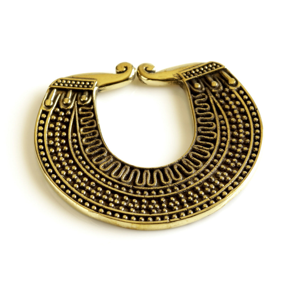 Tribal Brass Tunnel Charm. Hangs through stretched ear tunnels. Hoop diameter: 38mm Weight: 9gm