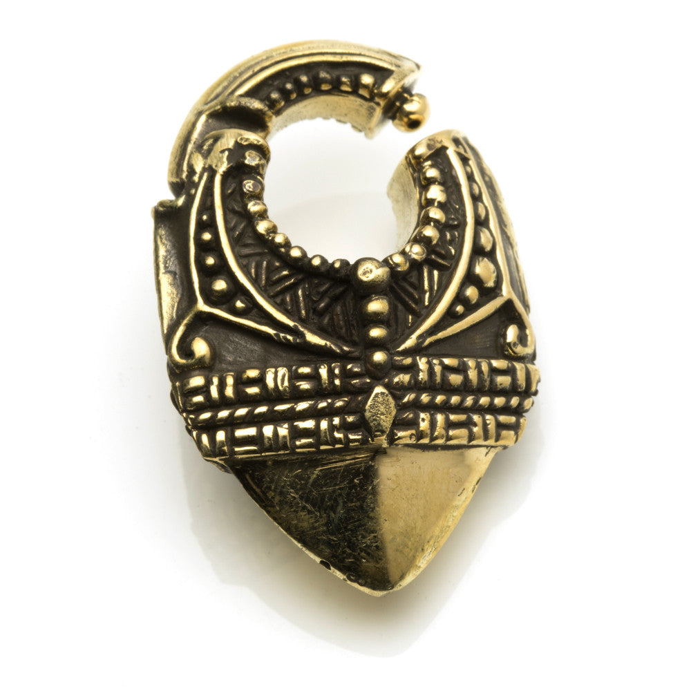 Hinged Brass Ear Weight Weight: 18.4gms Gauge: 6mm / 2ga External Diameter: 40mm x 25mm Antiqued Finish Only to be worn in healed piercings