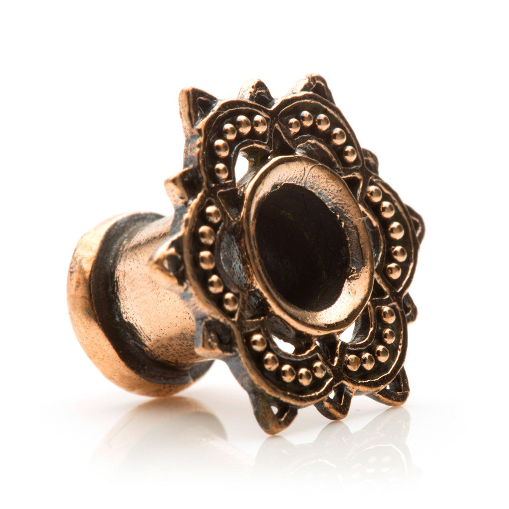 Rose Bronze Geometric Flared Tunnel Sizes: 3mm / 4mm / 5mm / 6mm / 8mm / 10mm / 12mm / 14mm / 16mm / 18mm Only to be worn in healed piercings