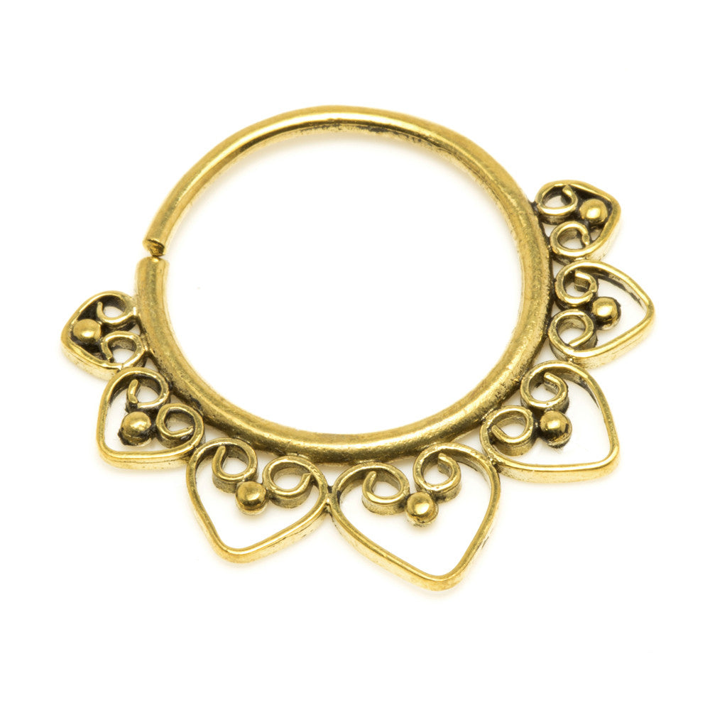 Small Brass Heart Ear Spiral Wear through tunnel or as earring Gauge: 1mm / 18g External Diameter: 19mm Only to be worn in healed piercings