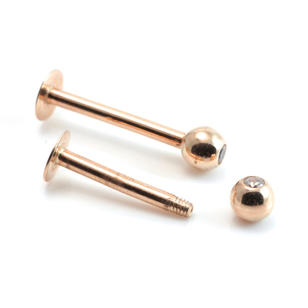 9ct Rose Gold Micro Gem Labret - Ideal for nose Size: 1mm x 7mm Ball Size: 3mm