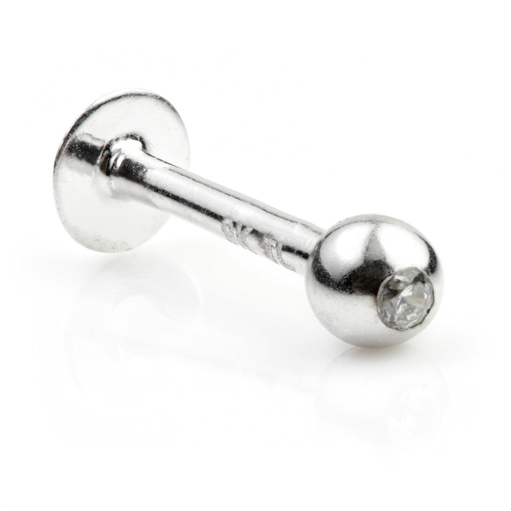 9ct White Gold Micro Gem Labret - Ideal for nose Sizes: 1mm x 7mm Ball Size: 3mm