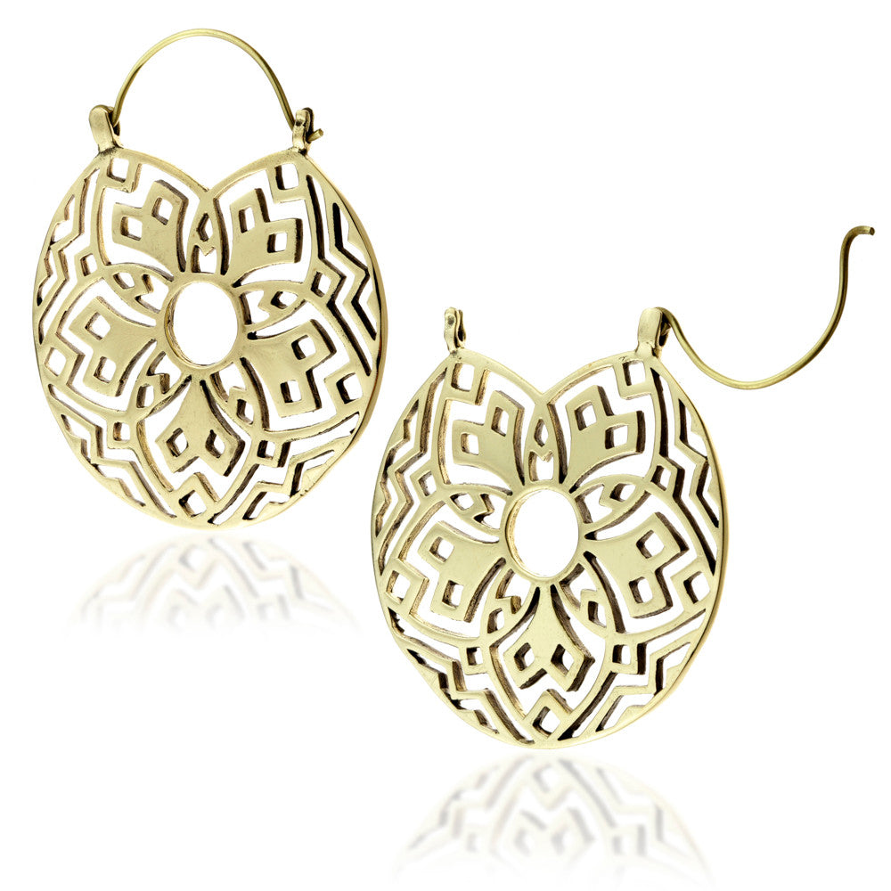 Brass Flower Disk Earrings (Pair) Wear through tunnel or as earring Gauge: 1mm / 18g External Diameter: 49mm Only to be worn in healed piercings