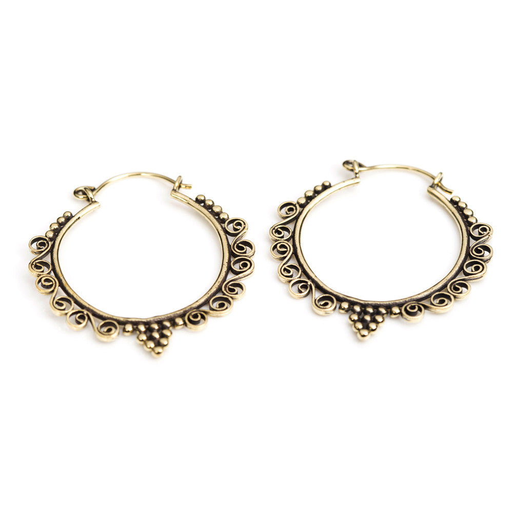 Brass Round Swirl Hoop Earrings (Pair) Wear through tunnel or as earring Gauge: 1mm / 18g External Diameter: 43mm Only to be worn in healed piercings