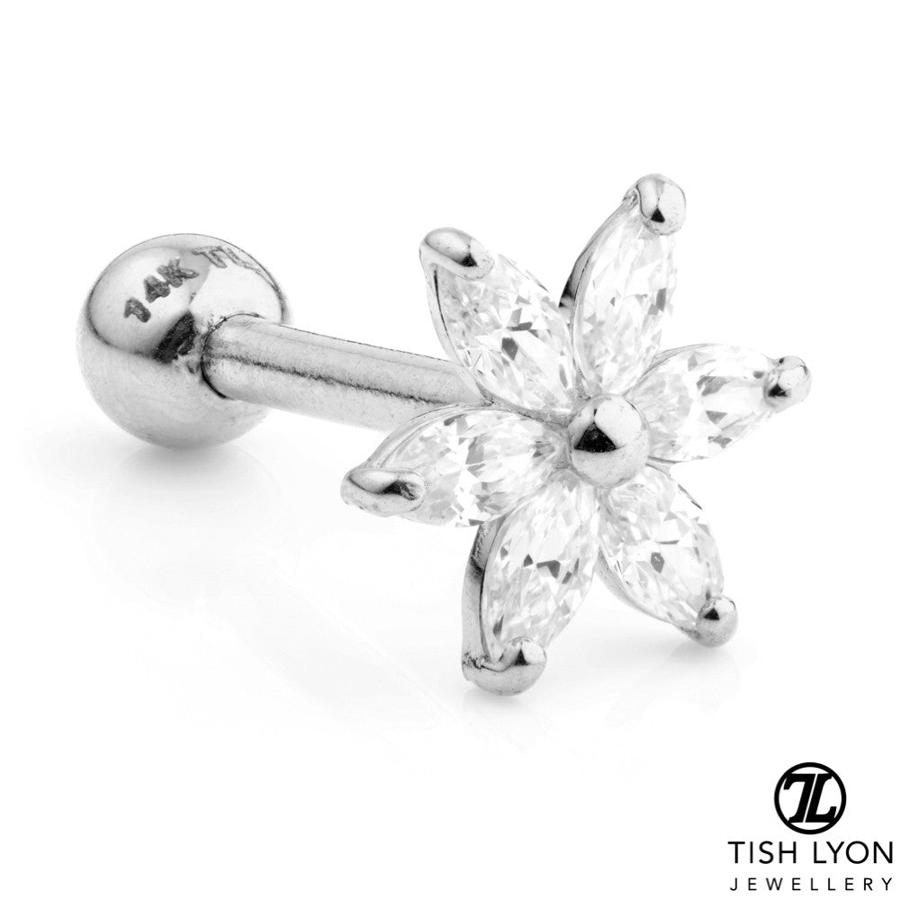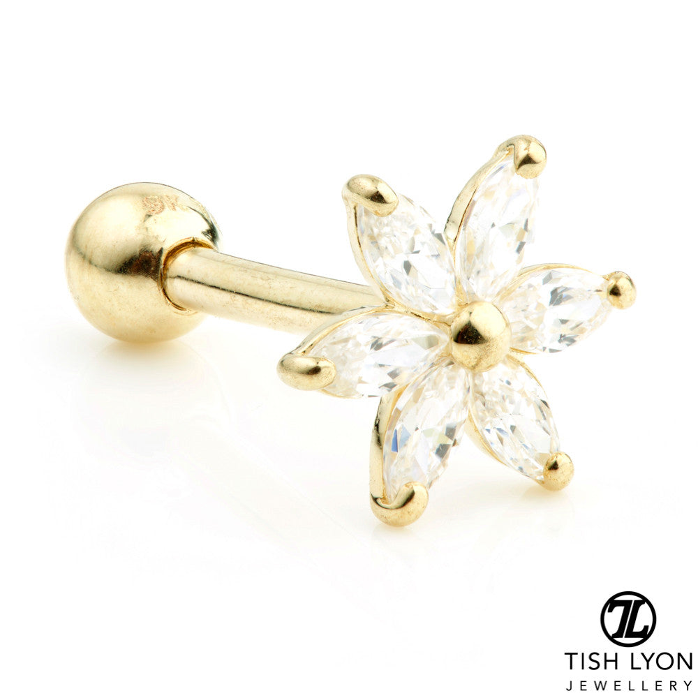 Gem Flower Solid Gold Cartilage Barbell Earring