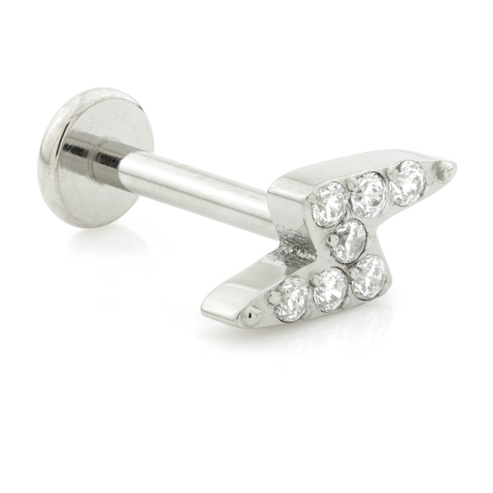 Internal Ti Jewelled Lightning Bolt Labret Gem Colour: Crystal Size: 8mm Gauge: 1.2mm Fits QM's Medical Grade Titanium 6Al-4VEli ASTM:F-136