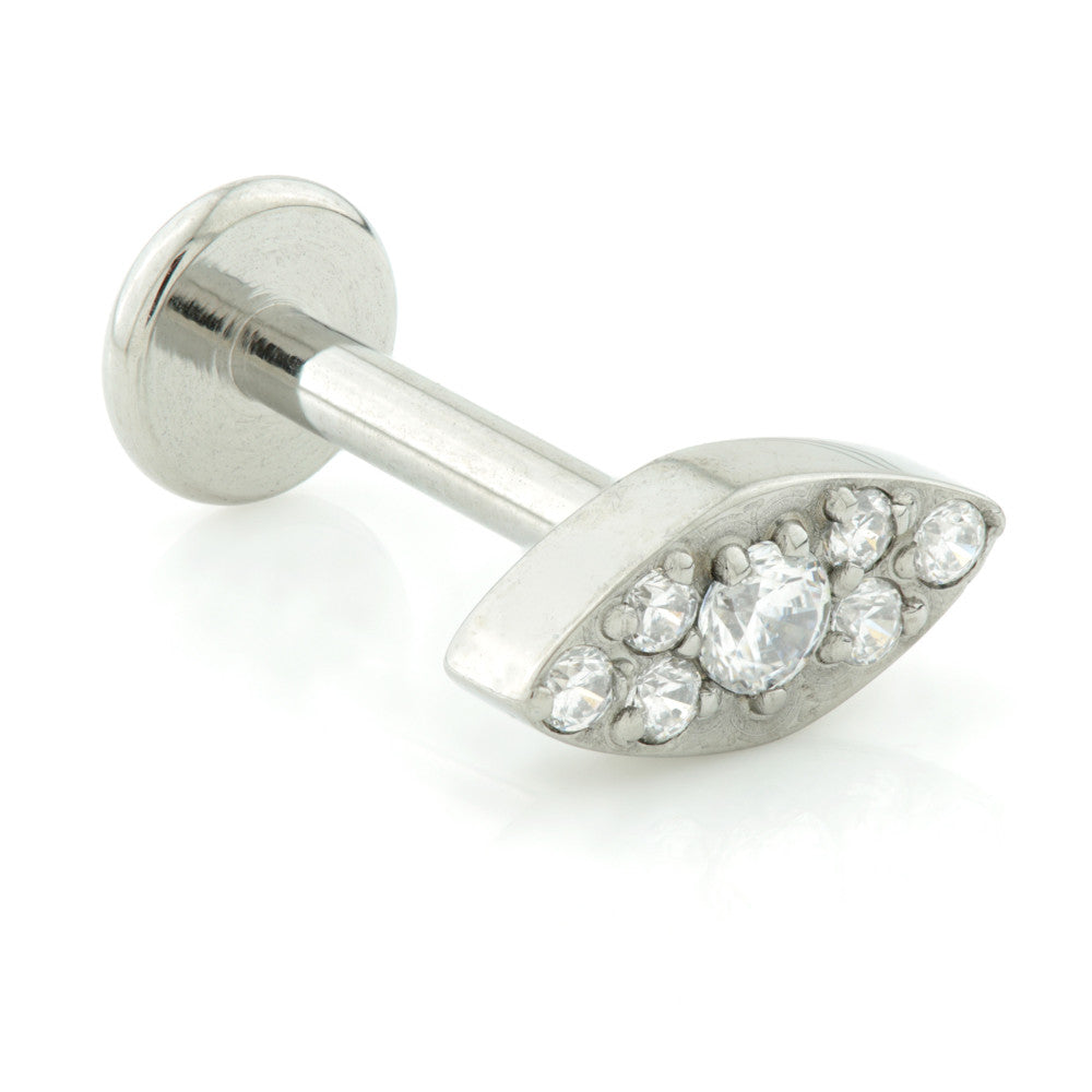 Internal Titanium Pave Marquise Top Labret Gauge: 1.2mm Size: 8mm Fits QM's Medical Grade Titanium 6Al-4VEli ASTM:F-136