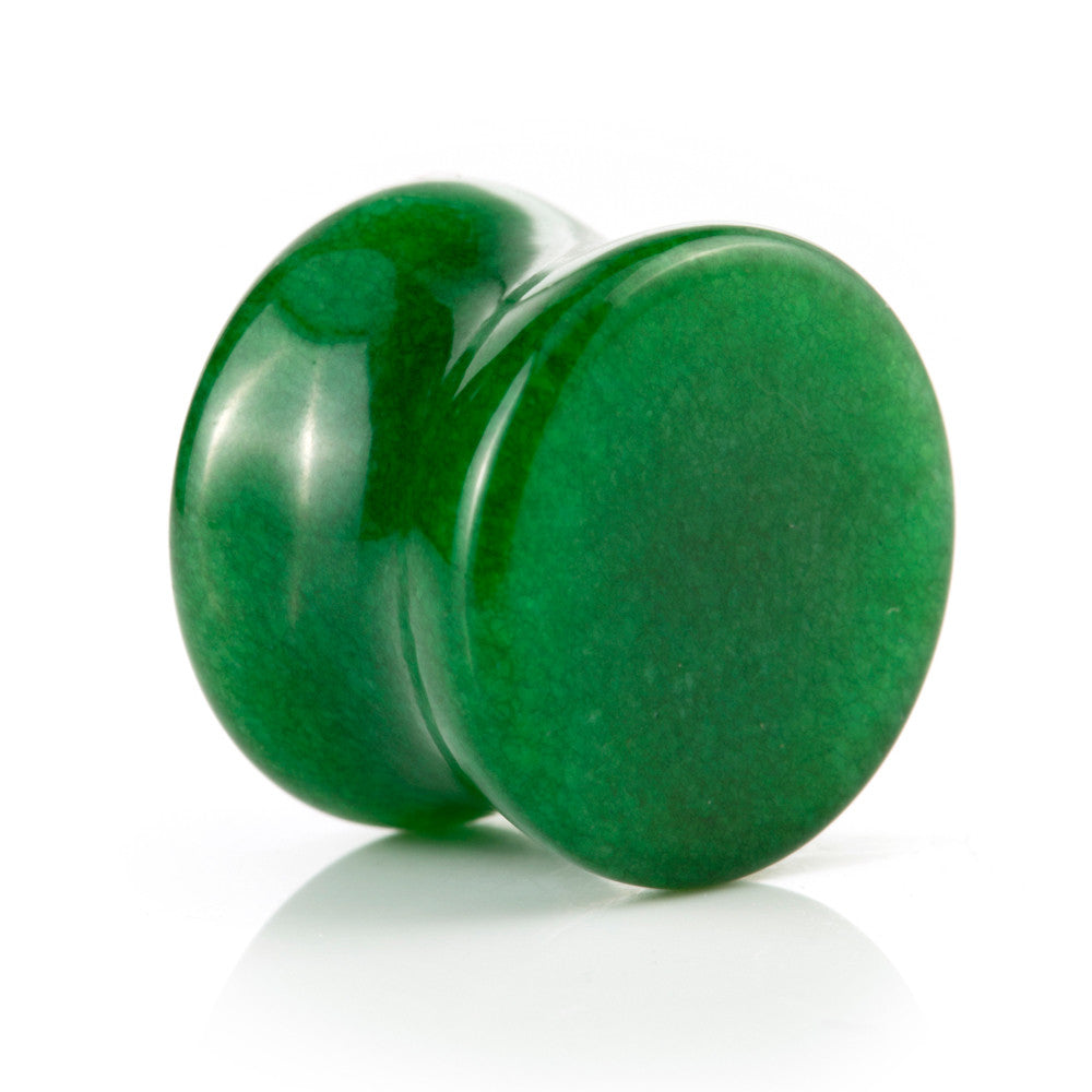 Green Jade Stone Plug (enhanced colour) Natural Stone - sold individually, buy 2 for a pair Sizes: 4mm, 5mm, 6mm, 8mm, 10mm, 12mm, 14mm, 16mm This is a natural / semi precious stone item which will break / chip if dropped.
