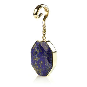 Mandala Jewellery - Lapis Hexagonal Stone on Brass Ear Weight (Single)