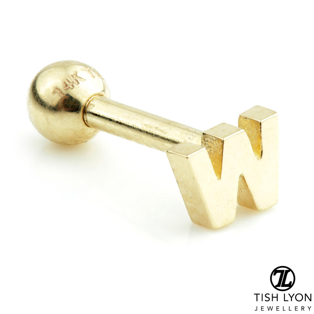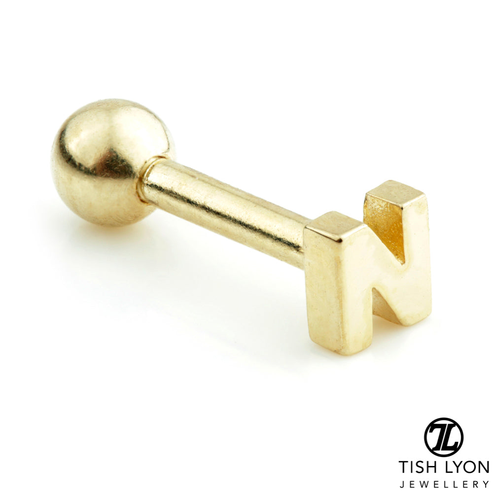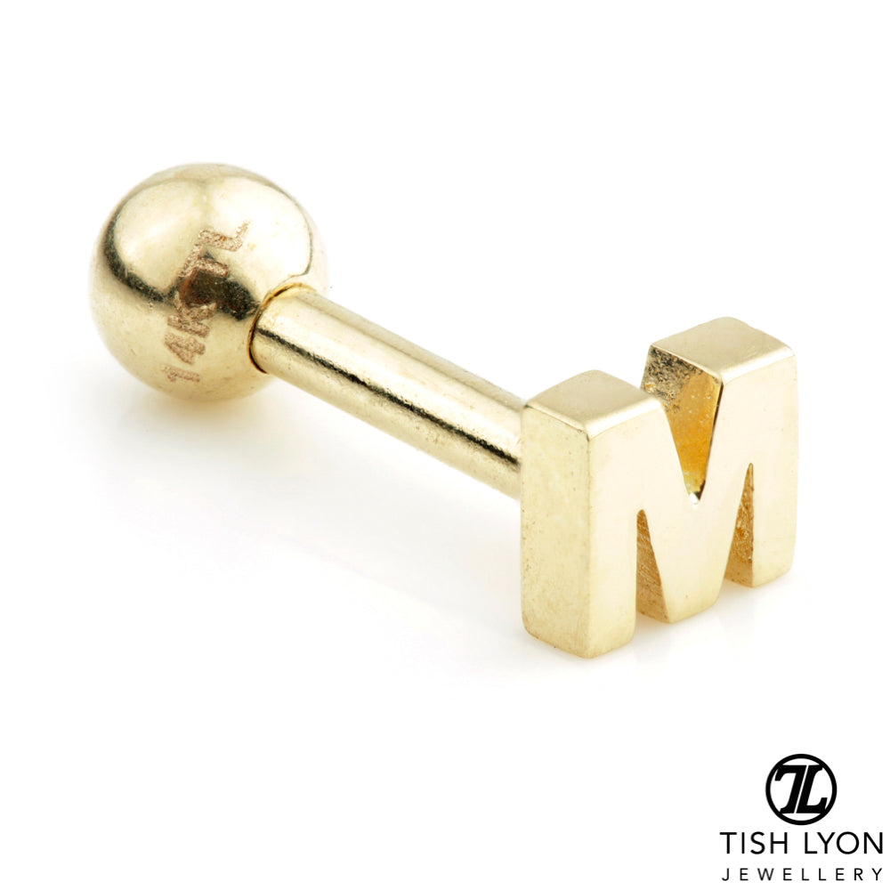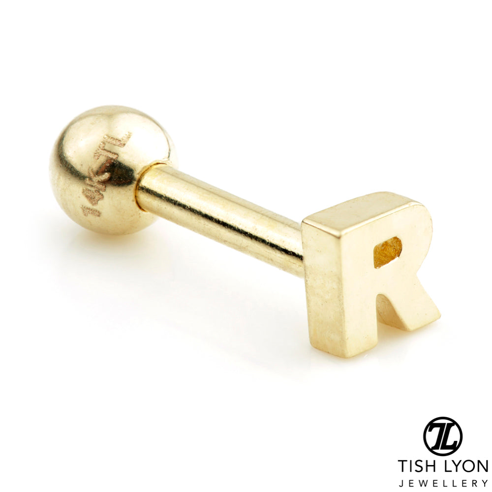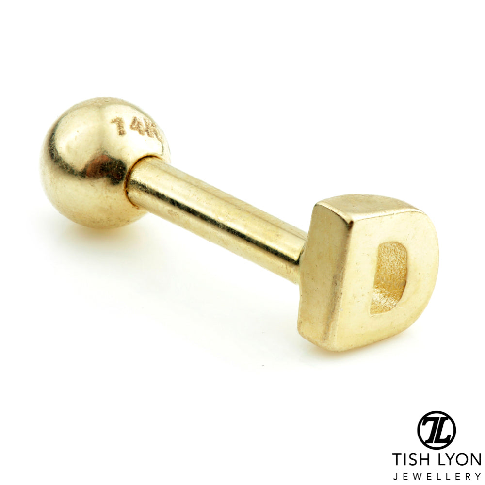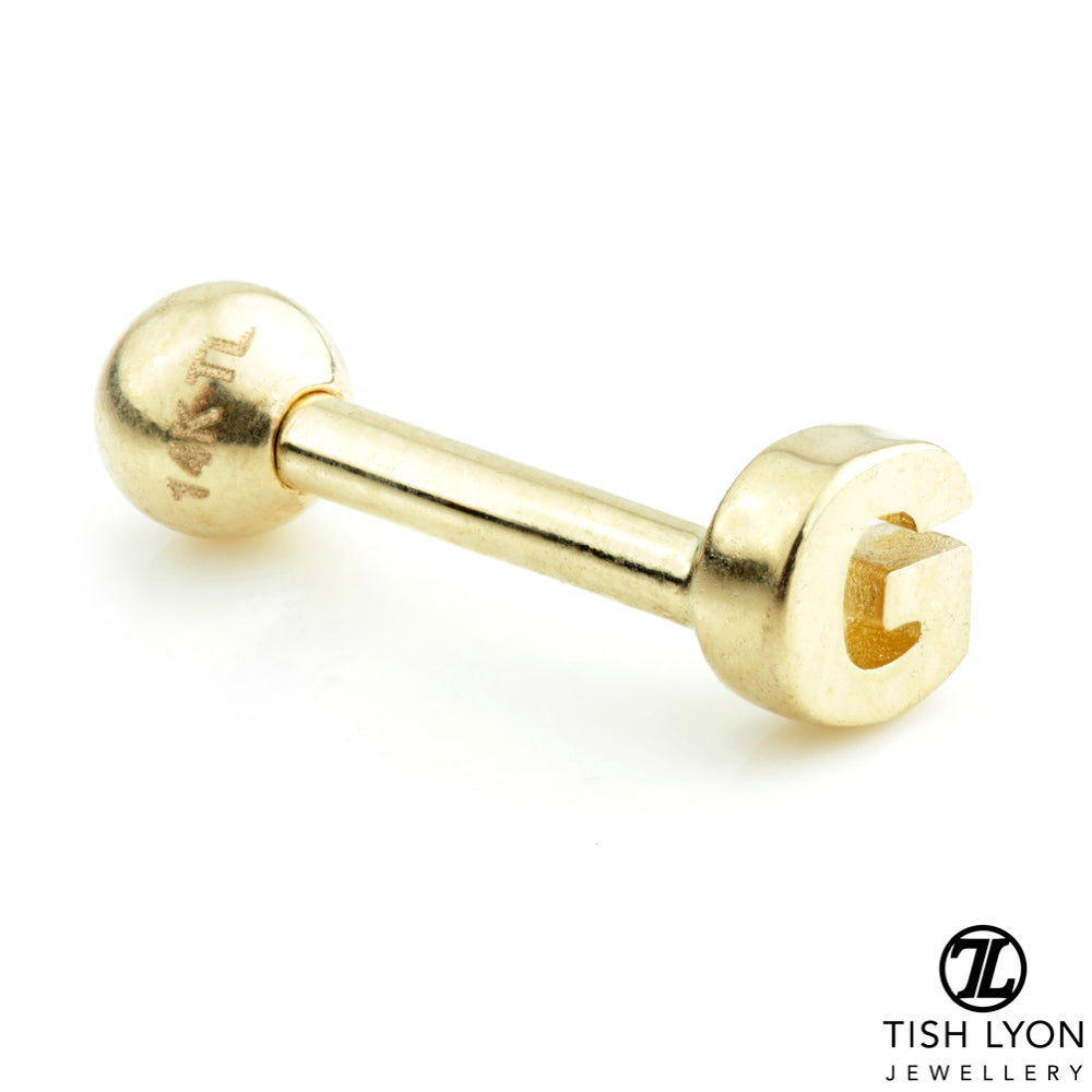 Micro Letter 14 Carat Solid Gold Barbell Earring