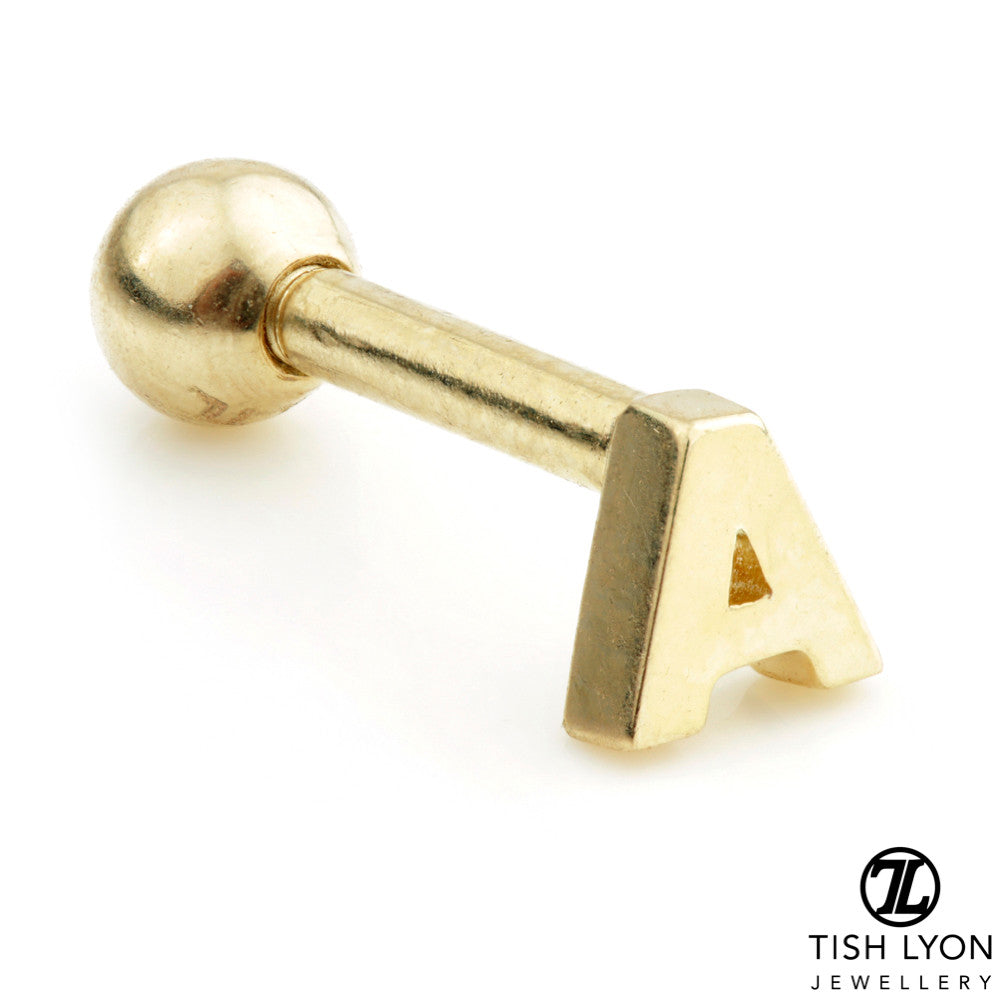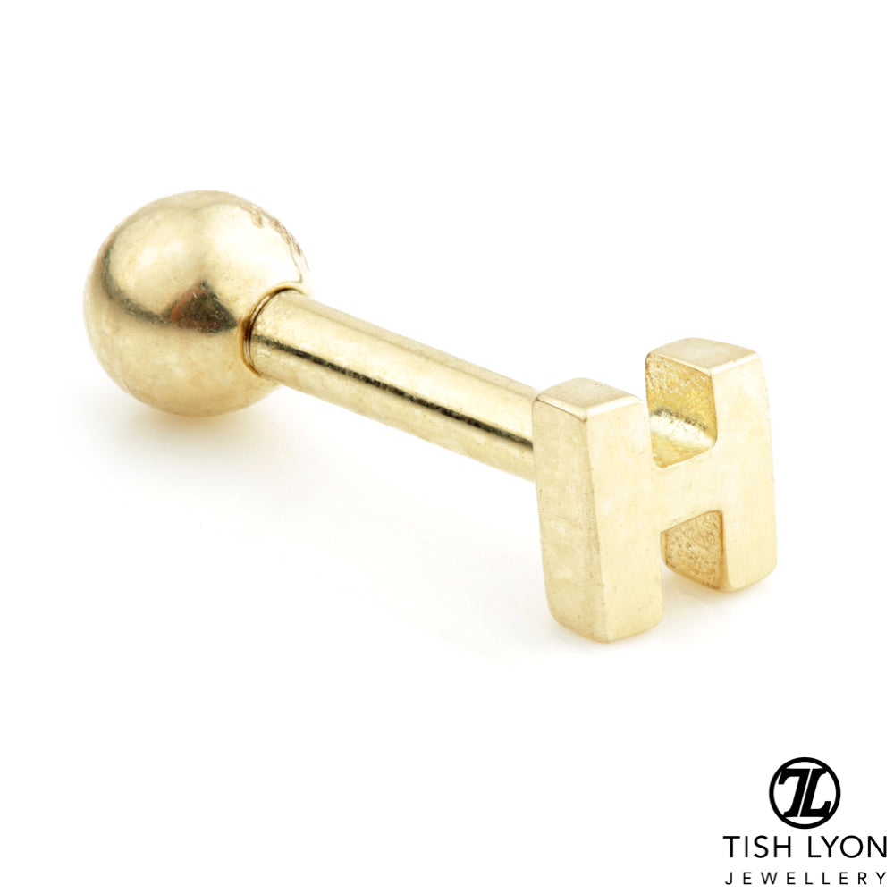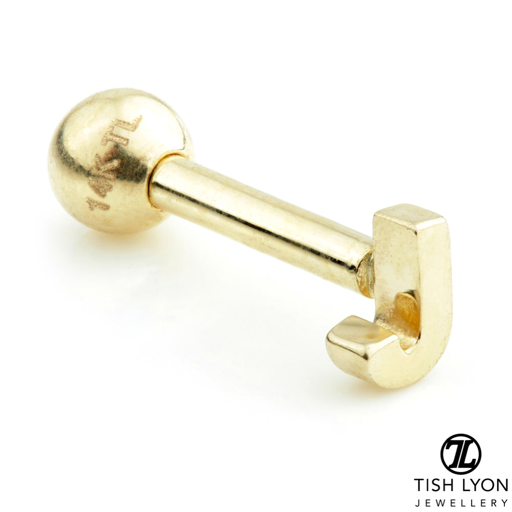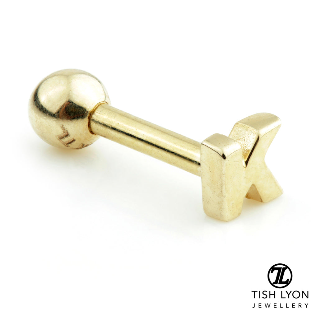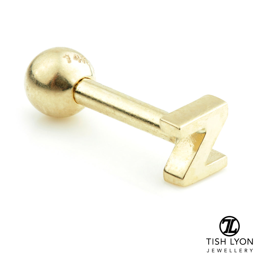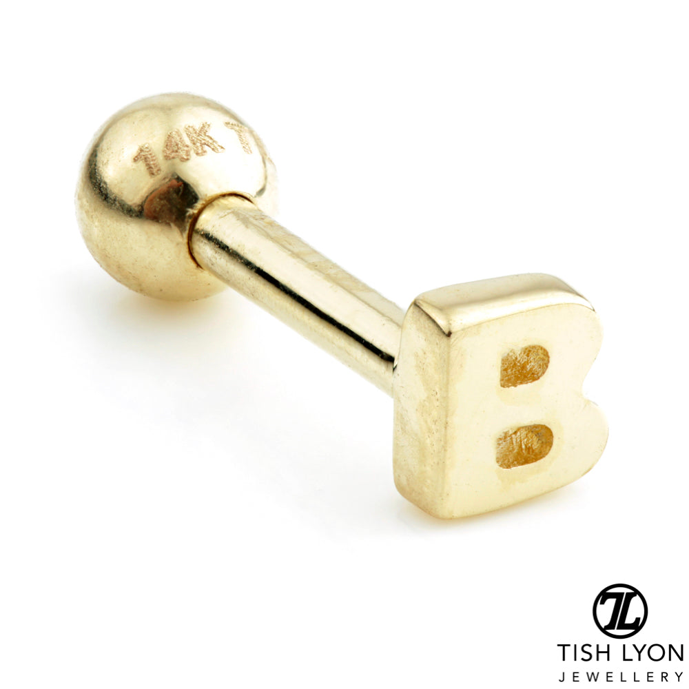 Micro Letter 14 Carat Solid Gold Barbell Earring