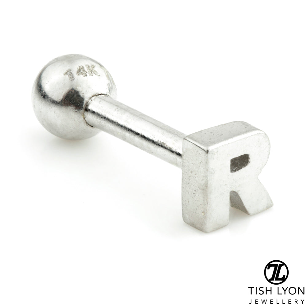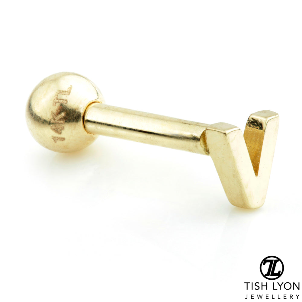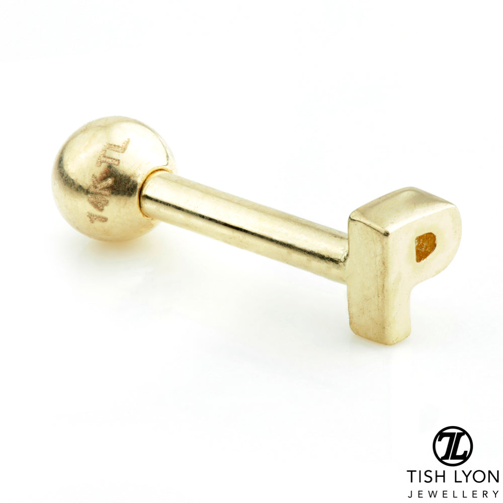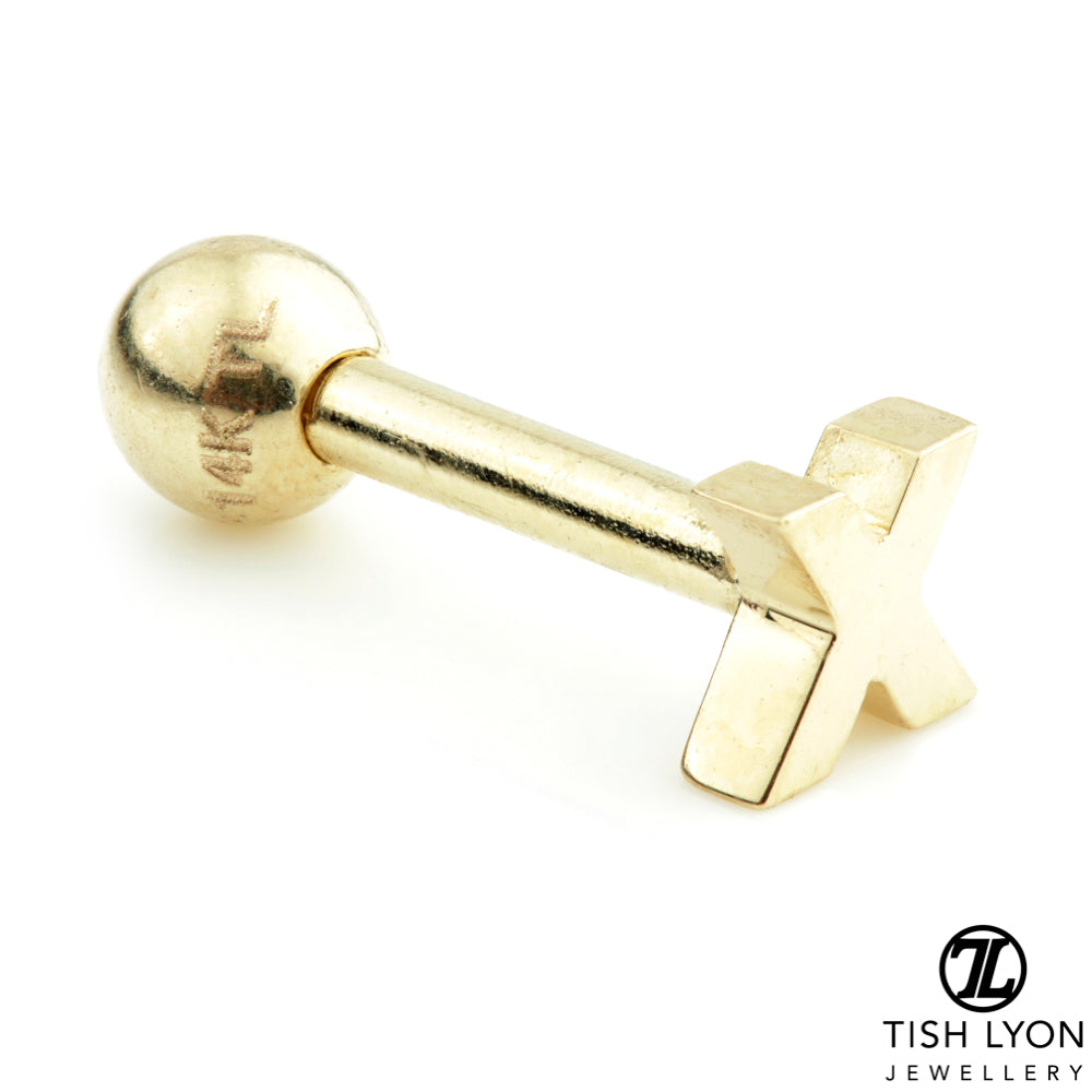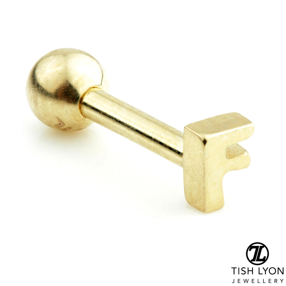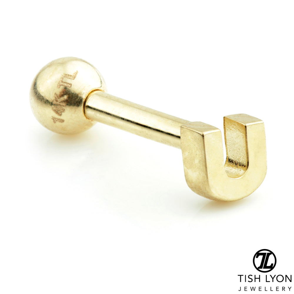 Micro Letter 14 Carat Solid Gold Barbell Earring