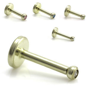 OLD SCHOOL Zircon PVD Gold on Titanium Micro Internal Gem Labrets Gauge: 1.6mmSizes: 6mm / 7mm / 8mm / 10mmBall Size: 2.5mm