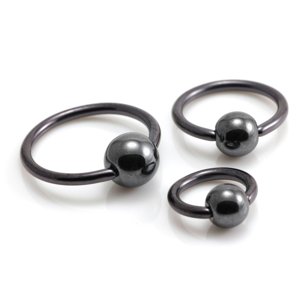 PVD Black on Titanium BCR with Hematite Bead Gauge: 1.2mmSize: 6/7/8/10/11mm Ball size as standard