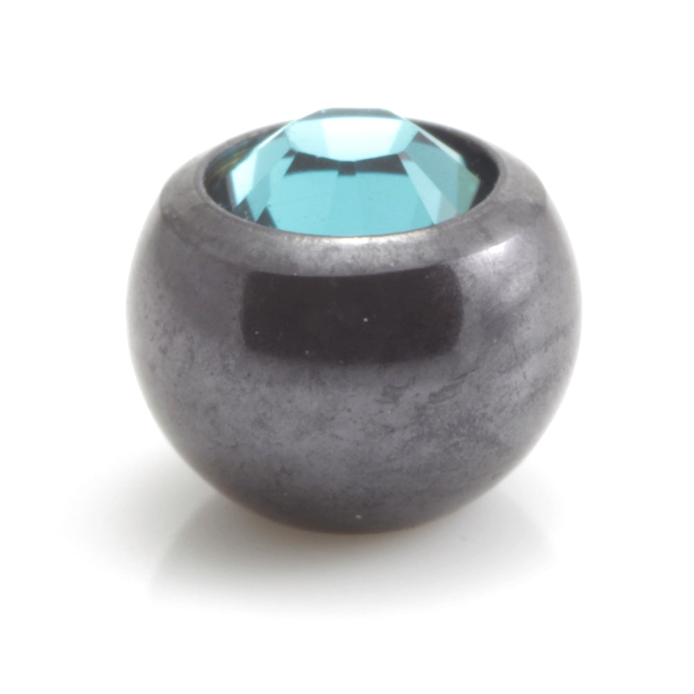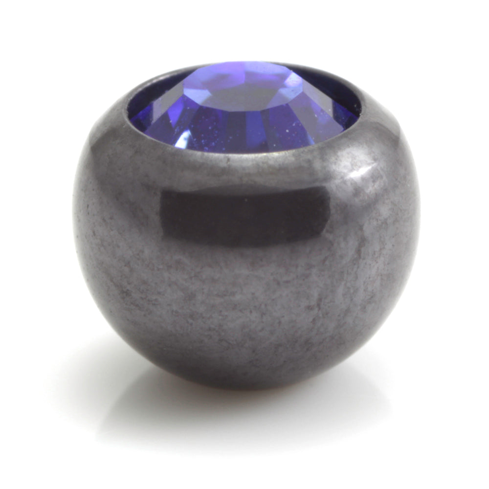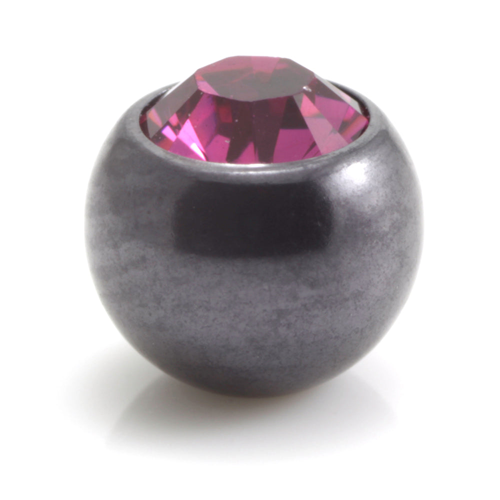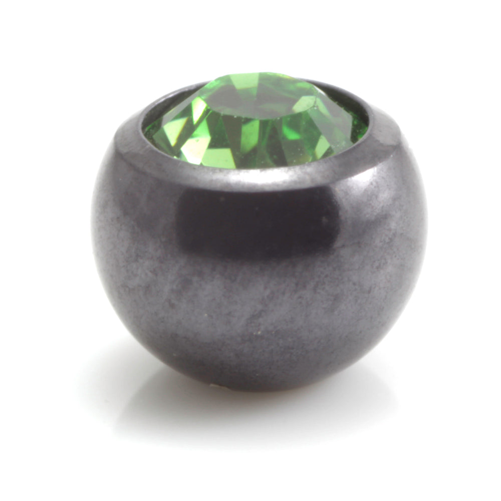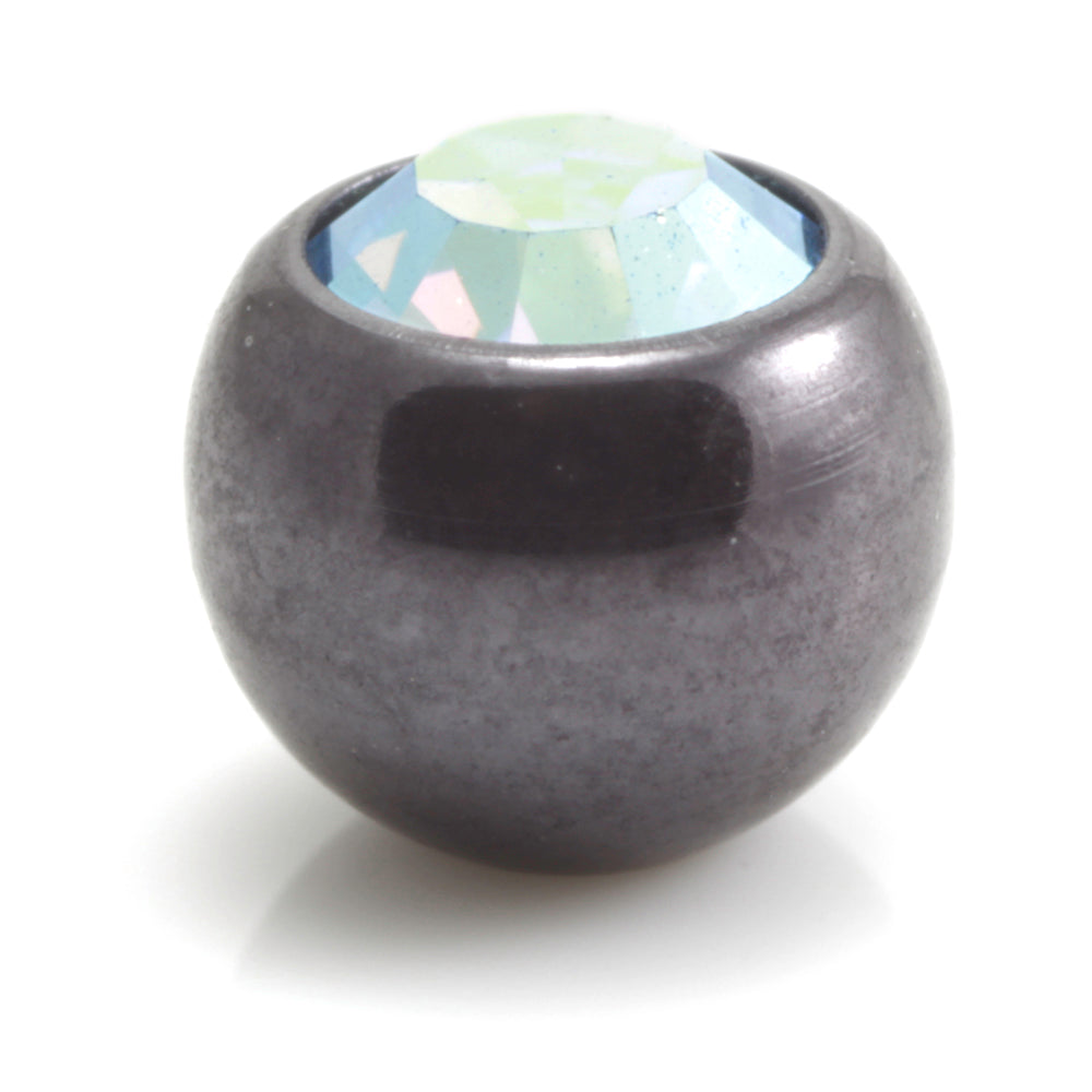 PVD Black on Titanium Gem Ball Gauge: 1.6mm Gem Ball Size: 4mm, 5mm, 6mm Gem Colours: AB Aqua, AB Cry, AB Rose, Amethyst, Aqua, BZ, Crystal, Emerald, Fuchsia, Jet, Lt Amethyst, Lt Rose, Lt Siam, Peridot, Rose, Sapphire