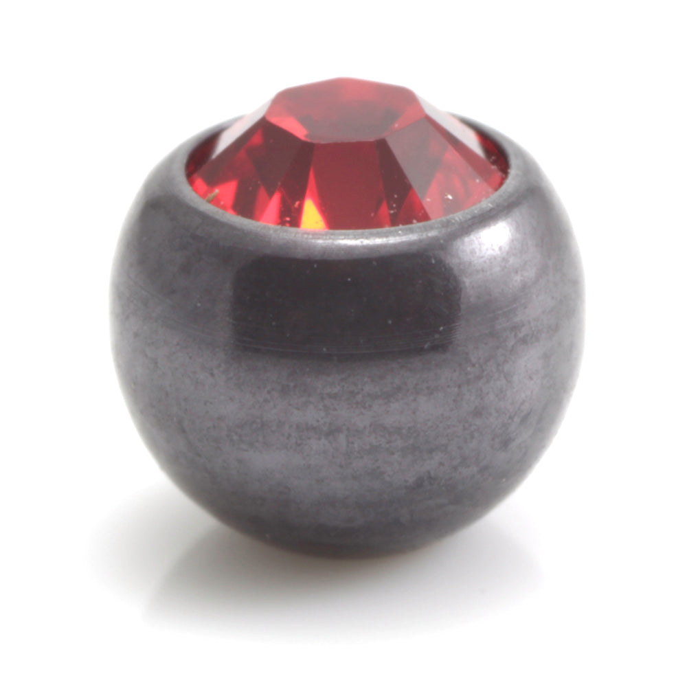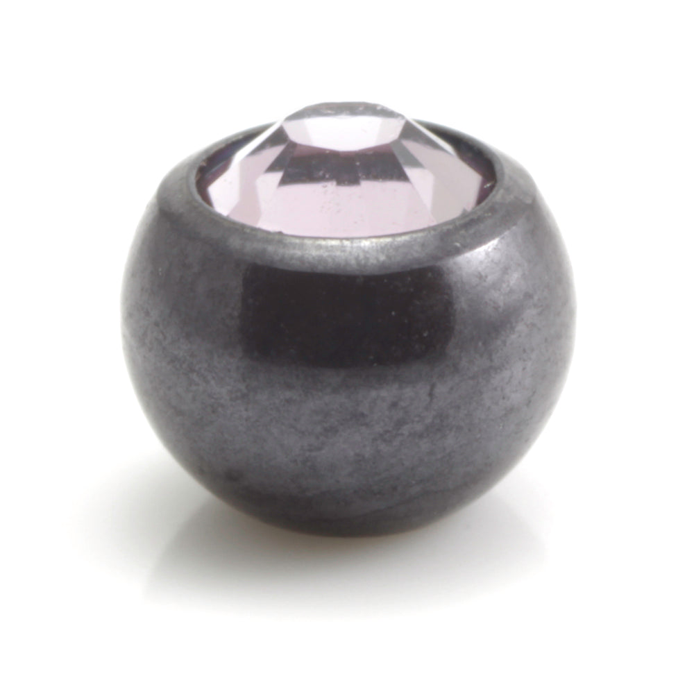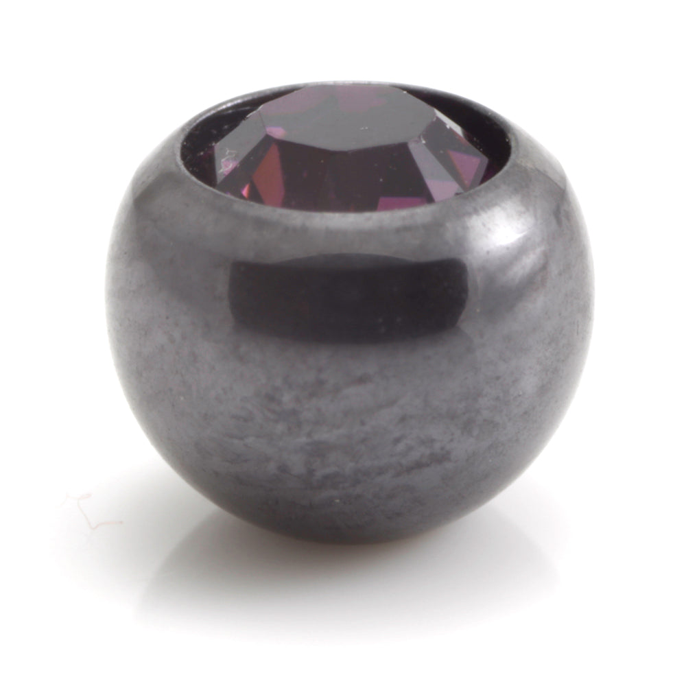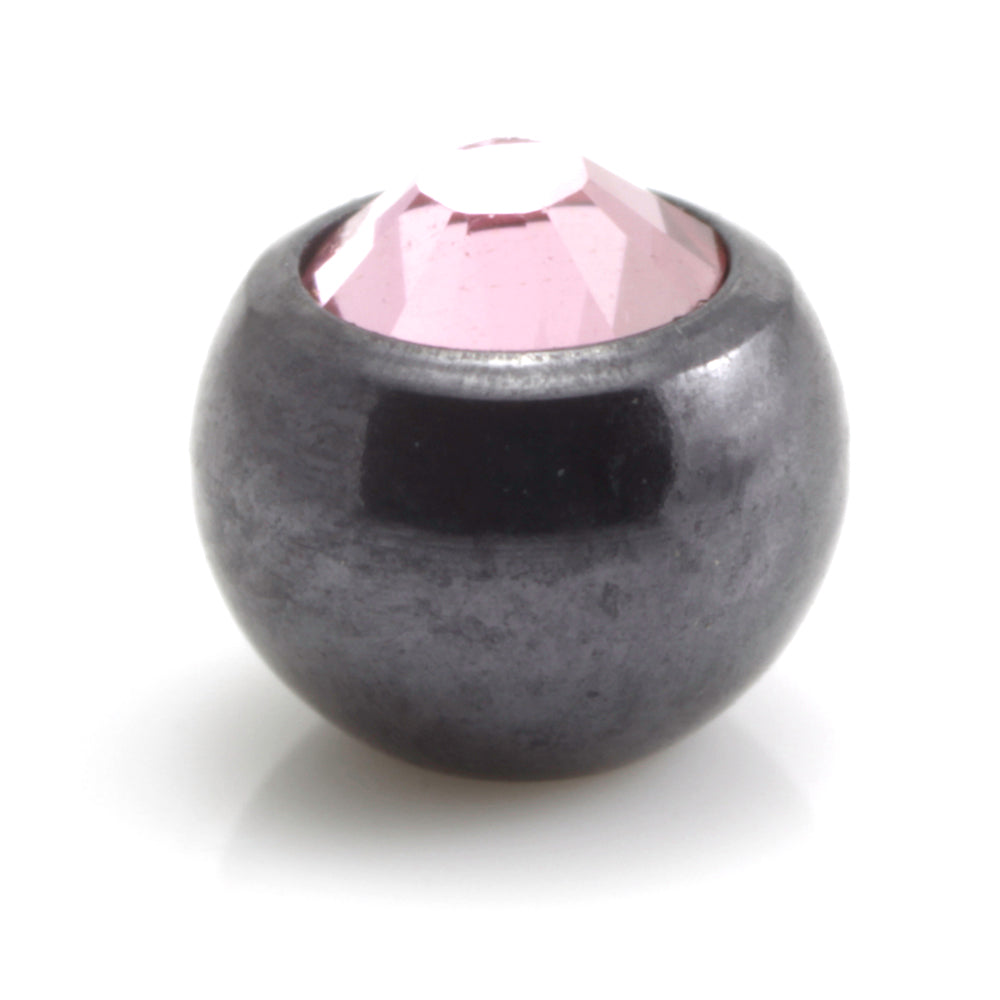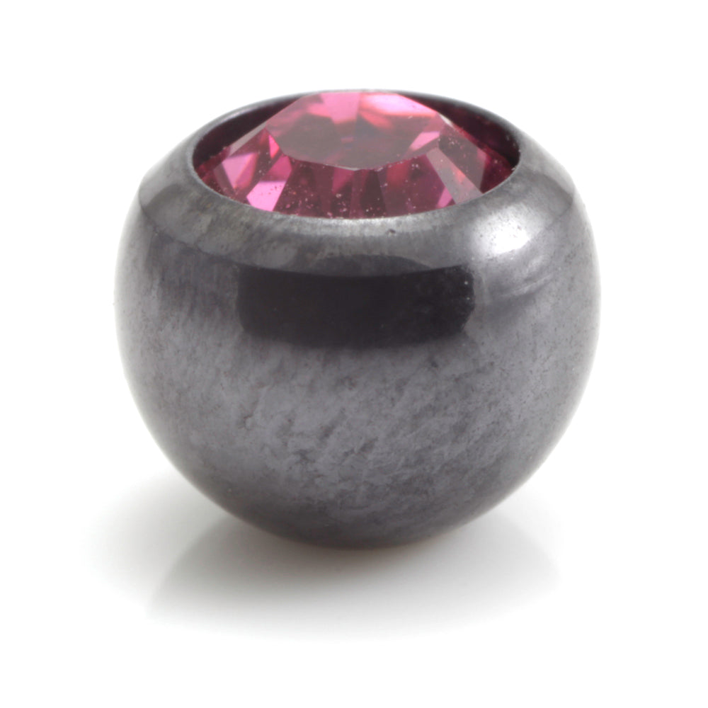 PVD Black on Titanium Gem Ball Gauge: 1.6mm Gem Ball Size: 4mm, 5mm, 6mm Gem Colours: AB Aqua, AB Cry, AB Rose, Amethyst, Aqua, BZ, Crystal, Emerald, Fuchsia, Jet, Lt Amethyst, Lt Rose, Lt Siam, Peridot, Rose, Sapphire