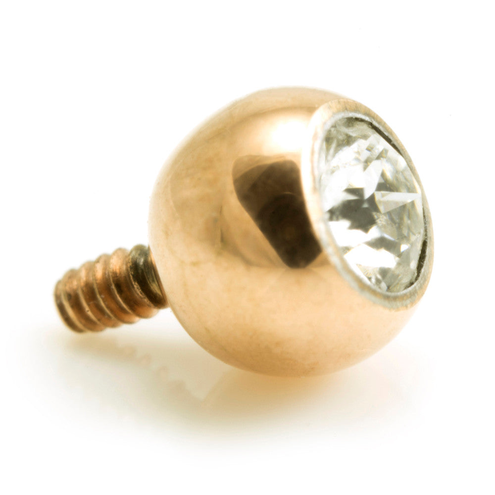 Internal 1.2mm Thread Titanium Rose Gold PVD Ball To fit onto 0.9mm internal thread micro jewellery including micro flat surface bars Gauge: 1.2mm Ball Size: 2mm, 2.5mm, 3mm, 4mm Gem Colour: Crystal Swarovski Crystal Gem Stones Medical Grade Titanium 6Al-4VEli ASTM:F-136