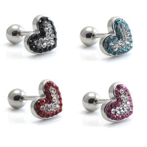 SALE - Steel External Multi Gem Double Heart Microbars Gauge: 1.2mm Size: 6mm Gem Colours: CR+AQ, CR+LS, CR+RS, CR+JT 316L Surgical Steel