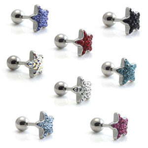SALE - Steel External Multi Gem Star Microbars Gauge: 1.2mm Size: 6mm Gem Colours: CR, AQ, AB, BZ, LS, RS, JT, SA 316L Surgical Steel