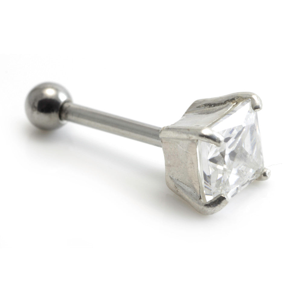925 Silver and Square Gem on 316L Steel Bar Gauge: 1.2mm Bar Size: 6mm Gem Colours: Crystal