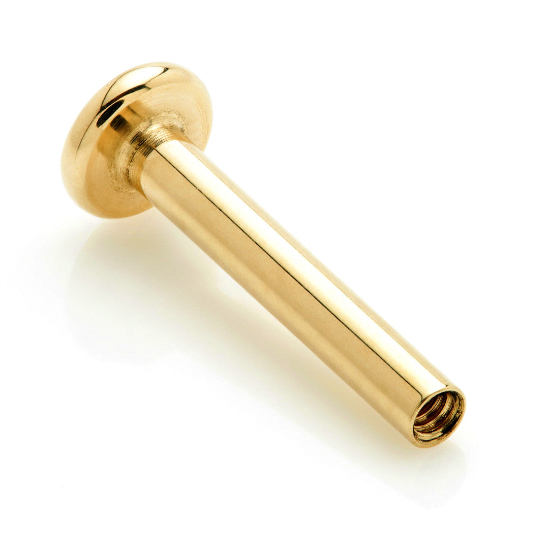 TL - 14ct Internal Gold Labret Stem Gauge: 1.2mm Size: 6 / 8 / 10mm Thread: Internal US Thread Gold Colour: Yellow / White Base Size: 3mm Fits TLQ attachments Suitable for initial piercing