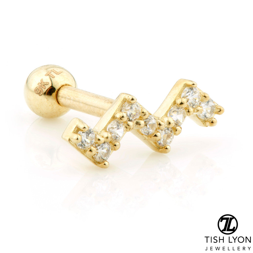 Solid Gold Gem Zig-Zag Cartilage Barbell Earring