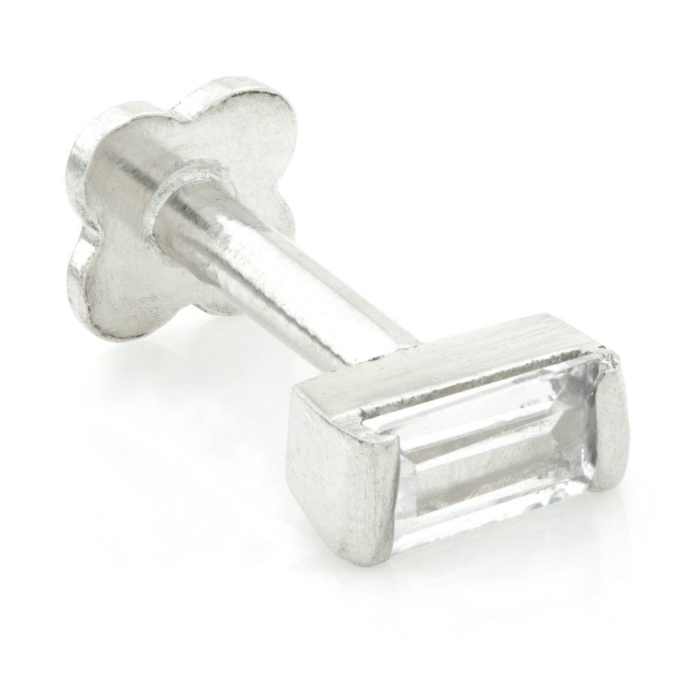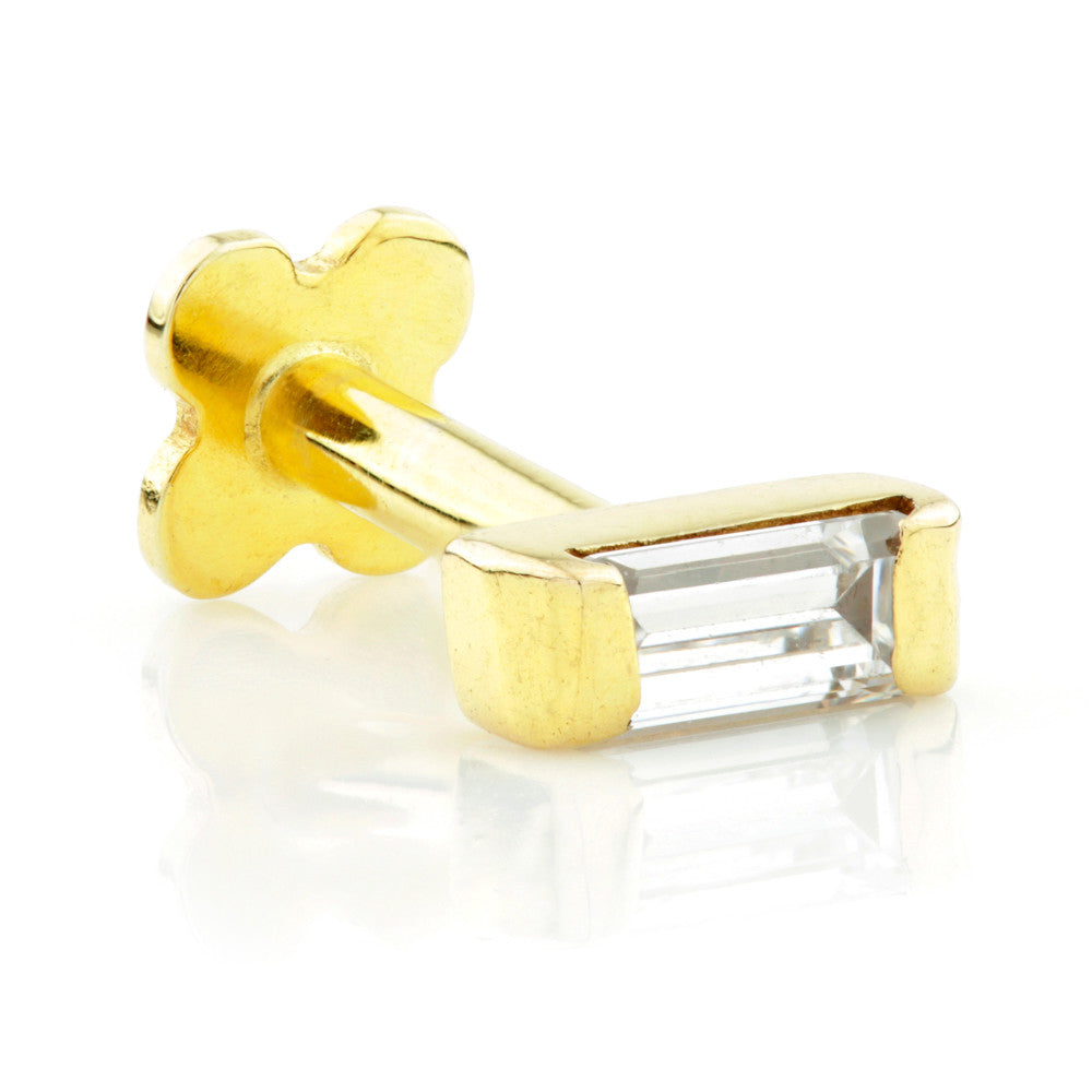 Solid Gold Jewelled Baguette Internal Thread Flatback Stud