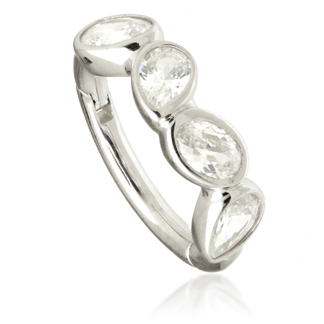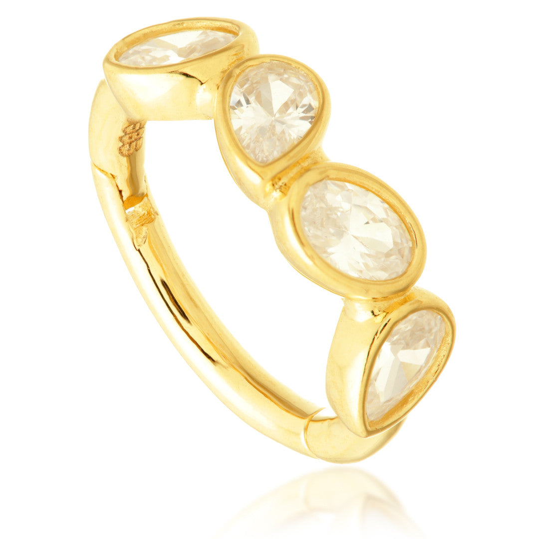 TISH LYON® - Gold Multi Pear Hinge Ring 9ct or 14ct Gold Colour: Yellow Gauge: 1.2mm Size: 6mm or 8mm Gem Size: 3*2mm Gem Colour: CR CZ Gem Stone
