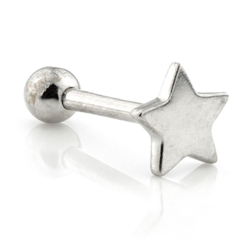 TISH LYON® 9ct Gold Star Disk Micro Barbell Star Diameter: 8mm Size : 1mm or 1.2mm x 6mm or 8mm Weight: 0.37gm Ball: 3mm Laser Marked on Ball (not on bar)