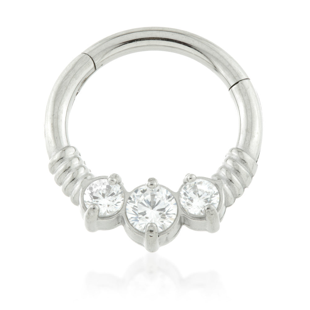 Steel 3 Gems Hinged Micro Ring