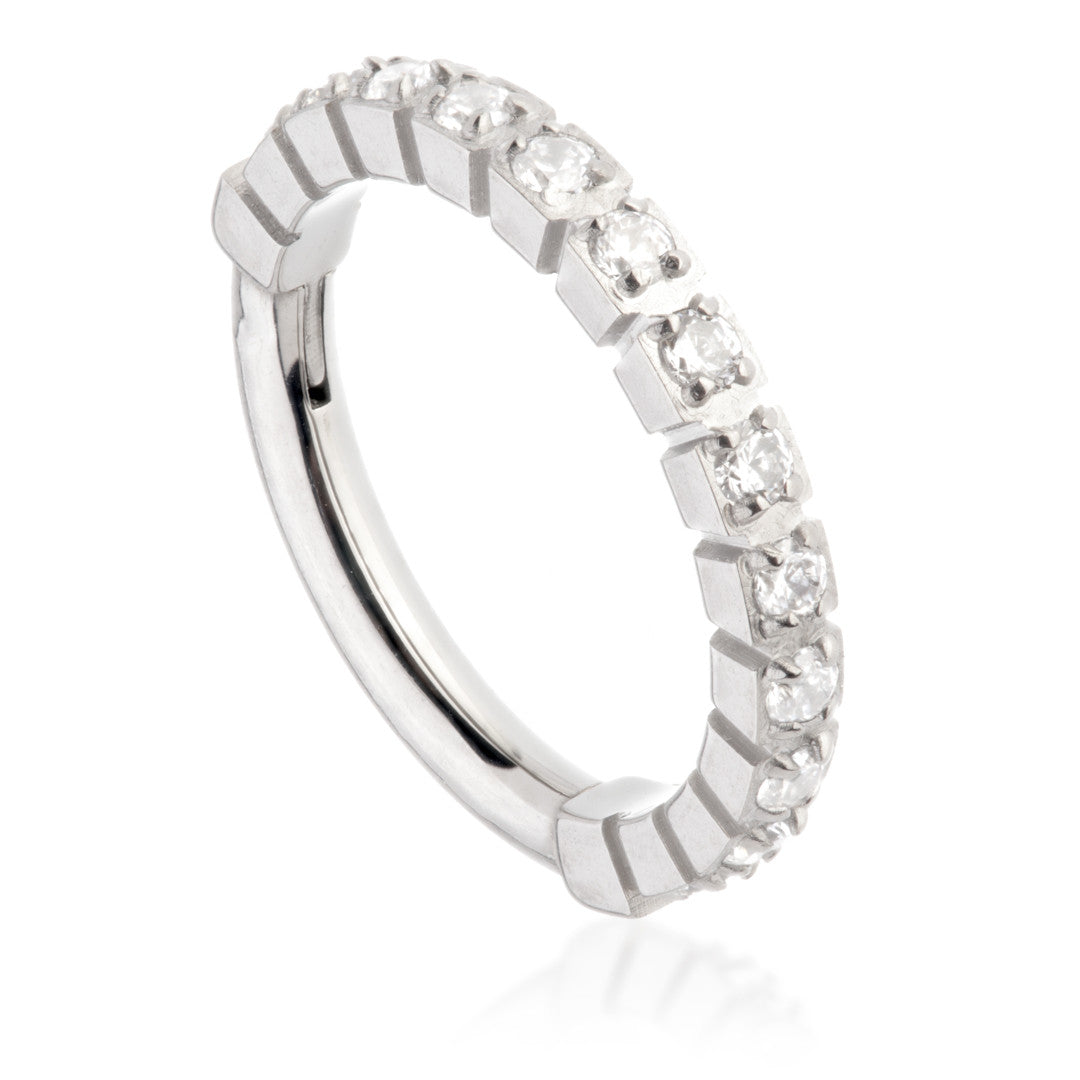 Ti Couture Jewelled Pave Square Print Hinged Ring Gauge: 1.2mm Size: 8mm Gem Colour: Crystal Medical Grade Titanium 6Al-4VEli ASTM:F-136