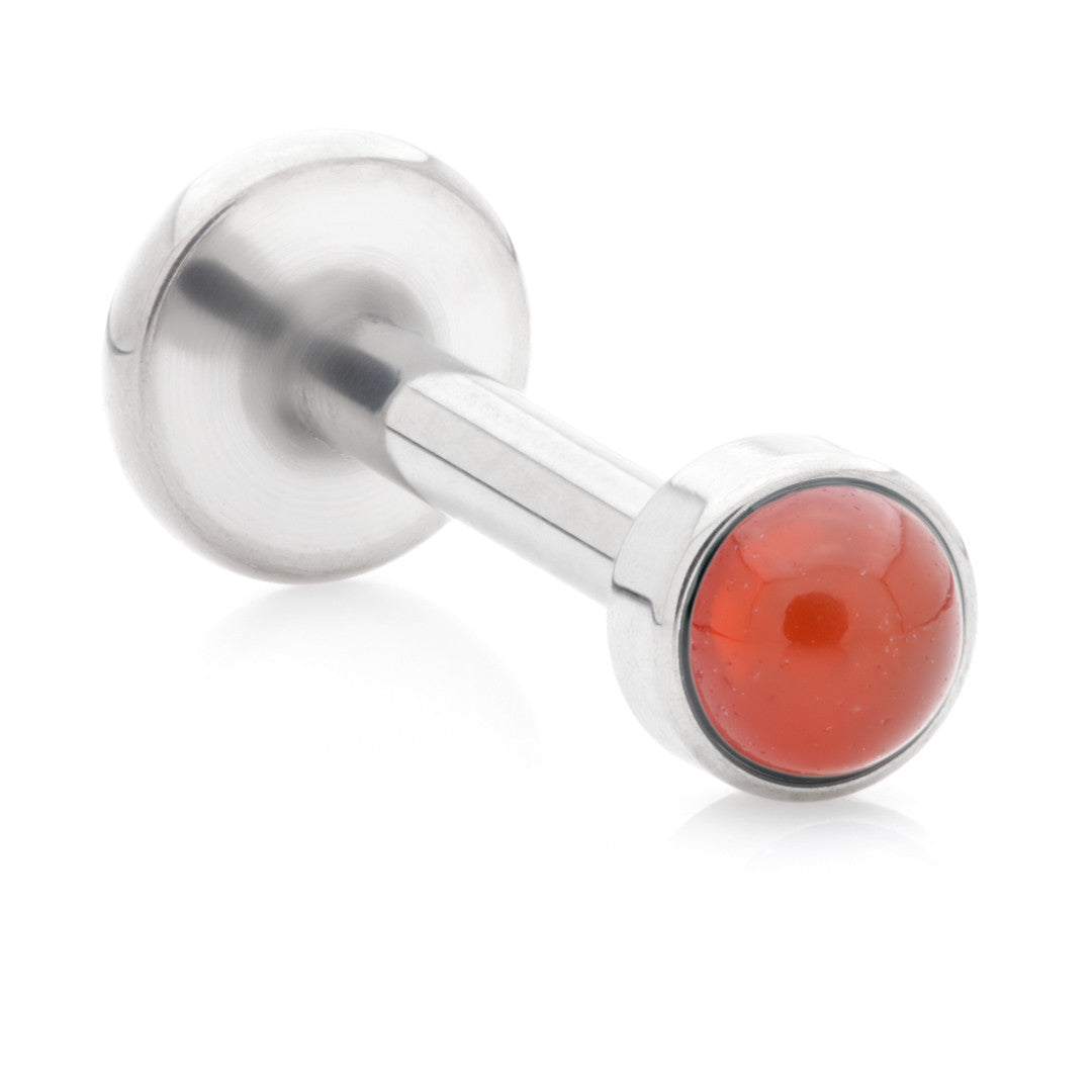 Titanium Internal Labret with Red Agate Stone Bezel Attachment Gauge: 1.2mmSize:8mmDisk: 3mmBase:4mmStone: Red Agate Medical Grade Titanium 6Al-4VEli ASTM:F-136