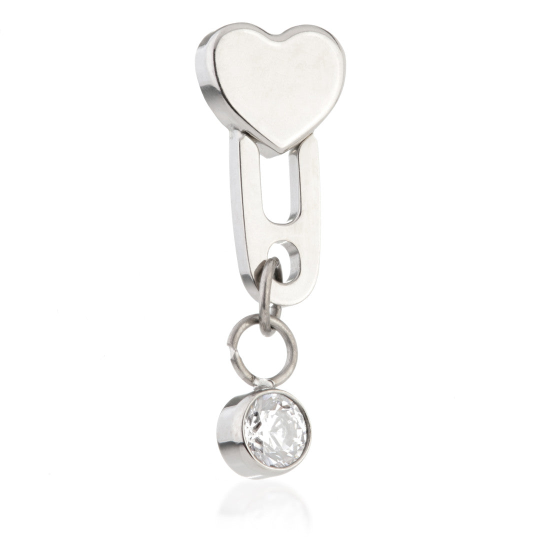 Ti Internal Locked Heart Attachment with Hanging Bezel Gem