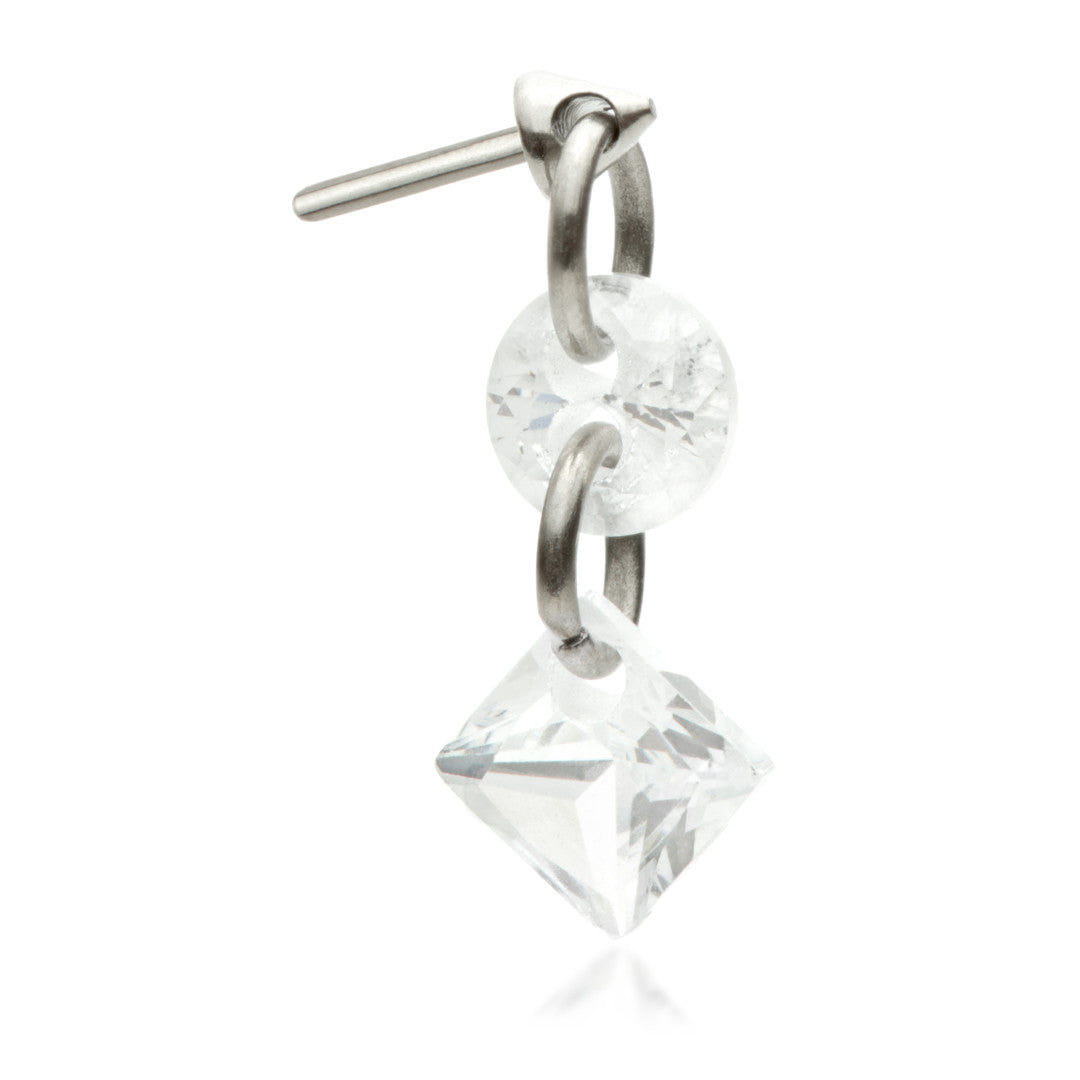 Ti Threadless Attachment with Double Round and Princess Cut Gem Charm