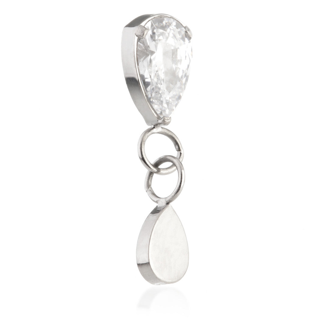 Ti Threadless Attachment with Gem Pear Charm Attachment Size: Plain Pear = 2.5*4mm Gem Pear = 3.5*5.5mm Gem Colour: Crystal Medical Grade Titanium 6Al-4VEli ASTM:F-136