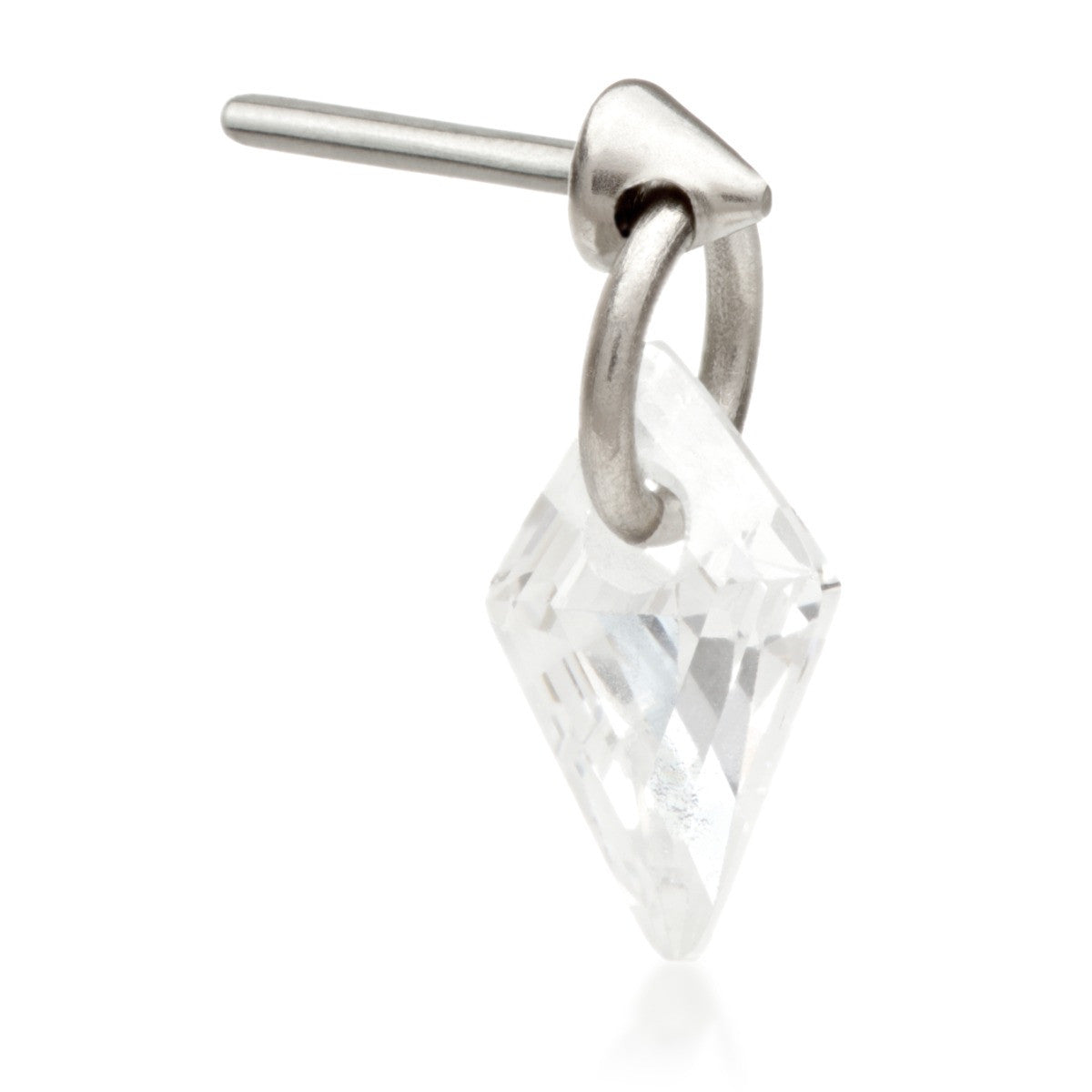 Titanium Threadless Attachment with Kite Shape Gem Charm Gauge: 1.0/1.2/1.6mm (0.5mm threadless) Charm Size: 5.5mm x 3mm Medical Grade Titanium 6Al-4VEli ASTM:F-136