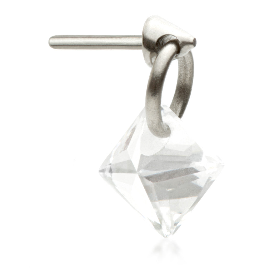 Ti Threadless Attachment with Princess Cut Gem Charm Gauge: 1.0/1.2/1.6mm (0.5mm threadless) Charm Size: 5mm x 4mm Medical Grade Titanium 6Al-4VEli ASTM:F-136
