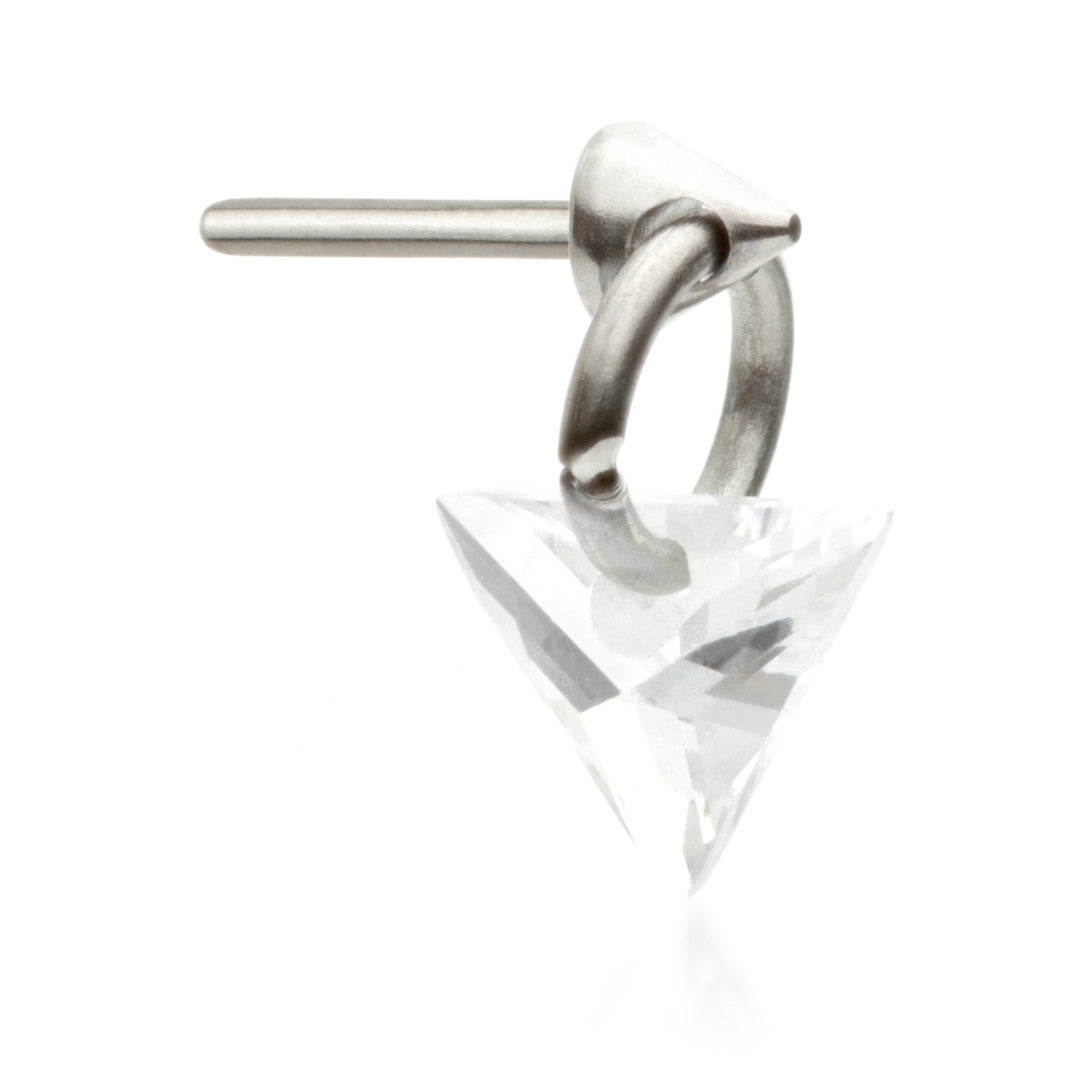 Ti Threadless Attachment with Trillion Cut Gem Charm Gauge: 1.0/1.2/1.6mm (0.5mm threadless) Charm Size: 5mm x 3.5mm Medical Grade Titanium 6Al-4VEli ASTM:F-136