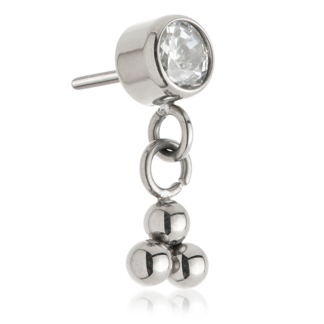Titanium Threadless Gem with Hanging Trinity Charm Gem Colour: CR CZ Gem Stones Medical Grade Titanium 6Al-4VEli ASTM:F-136