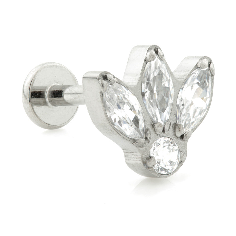 Ti Threadless Labret with Fleur De Lis Gem Top Gauge: 1.2mm (threadless) Size: 8mm Gem Colour: Crystal Fits all POP's Medical Grade Titanium 6Al-4VEli ASTM:F-136