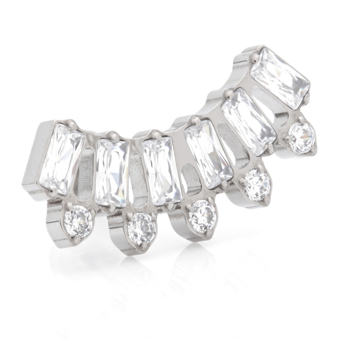 Ti Threadless Labret with Jewelled Baguette Cluster Attachment Gauge: 1.2mm Size: 8mm Attachment Size: Gem Colour: Crystal Medical Grade Titanium 6Al-4VEli ASTM:F-136