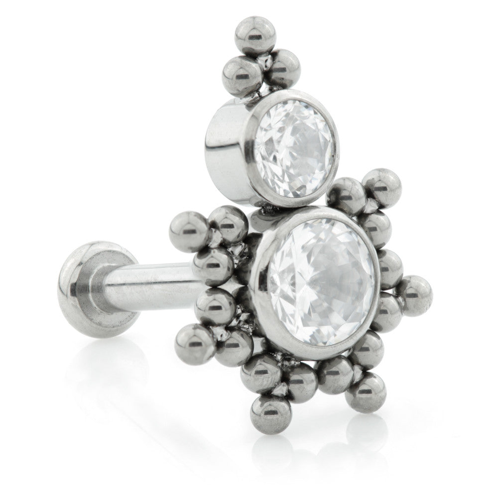 Ti Threadless Labret with Tribal Bead Double Gem Attachment (3mm base)