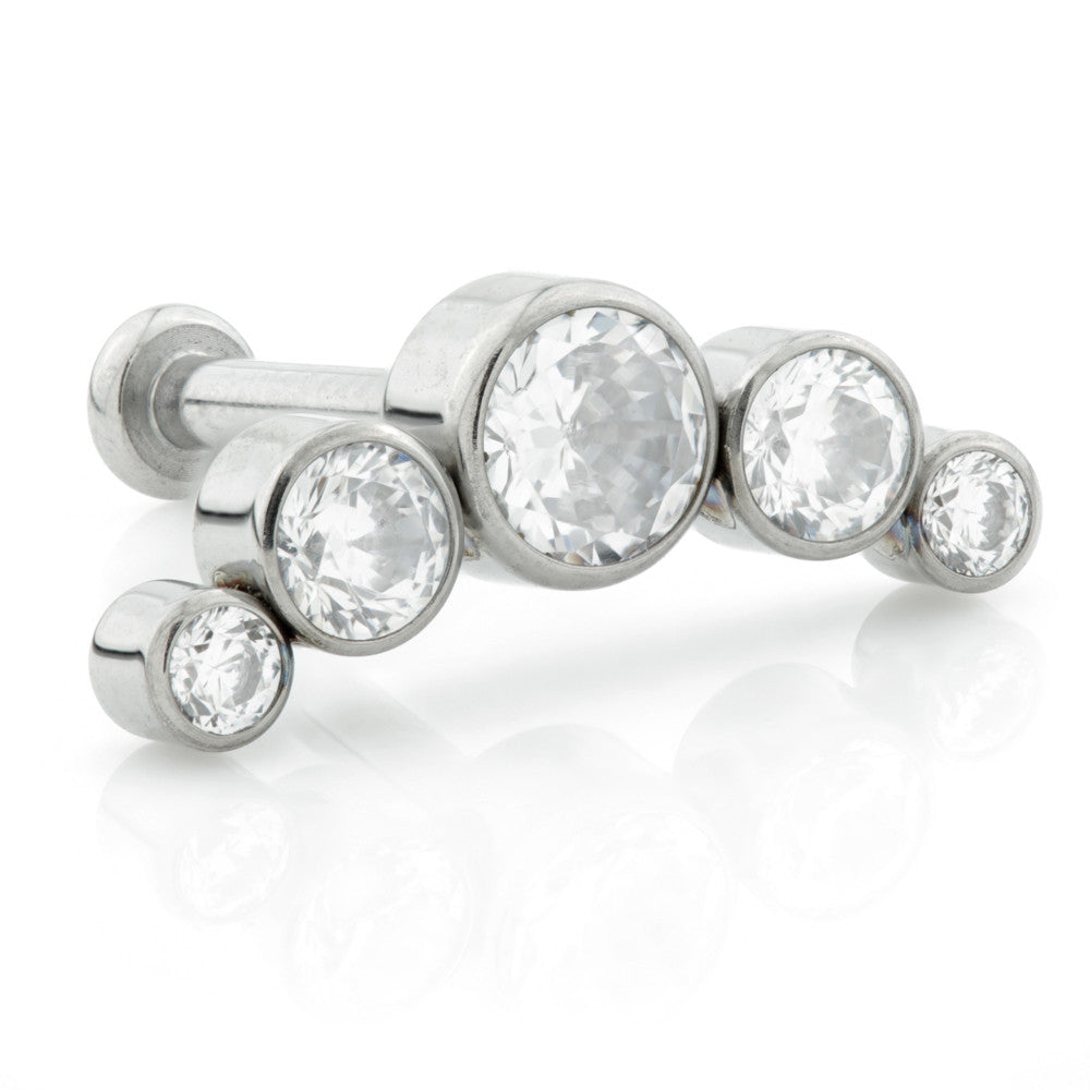 Titanium Small Base Labret with Crescent Gem Attachment Gauge: 1.2mm (threadless) Labret Sizes: 8mm Gem Colour: Crystal Fits all POP's Medical Grade Titanium 6Al-4VEli ASTM:F-136