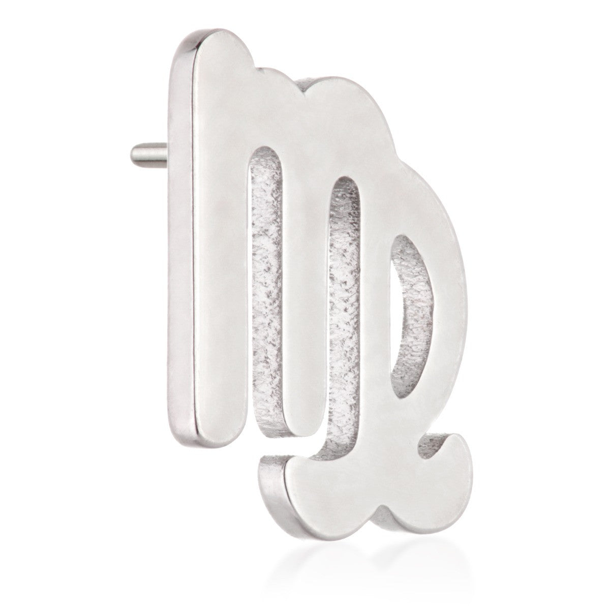 Ti Threadless Virgo Zodiac Sign Attachment Gauge: 1.0/1.2/1.6mm (0.5mm threadless) Attachment Size: 7mm x 8.5mm Medical Grade Titanium 6Al-4VEli ASTM:F-136