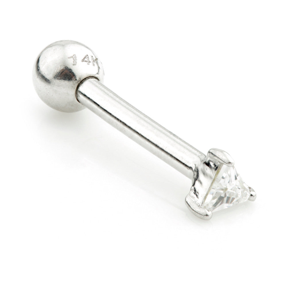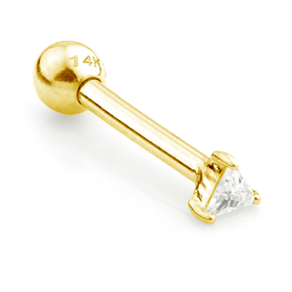 Tiny Triangle Gem Solid Gold Barbell Earring