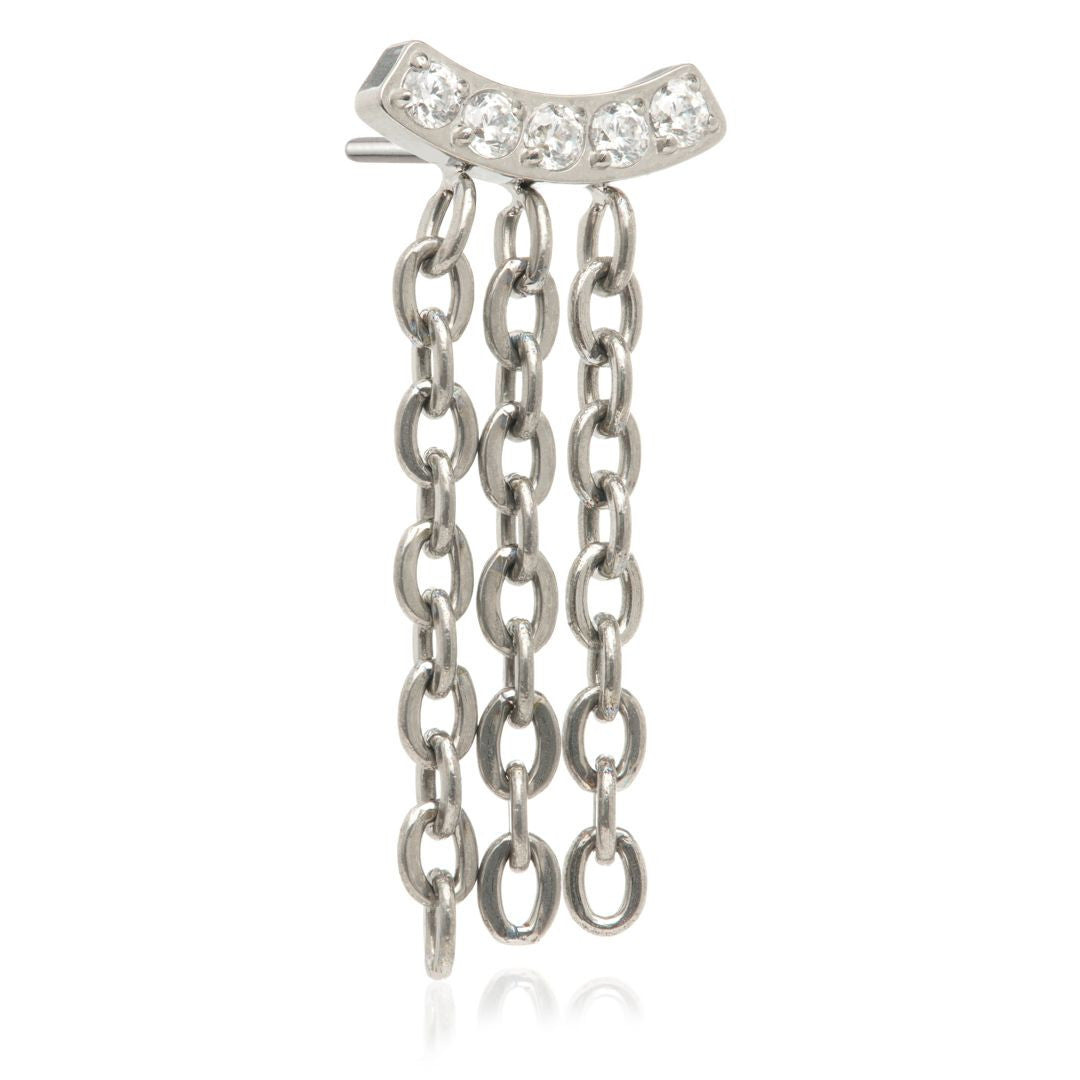 Titanium Threadless Curved Gem Attachment with Hanging Chains