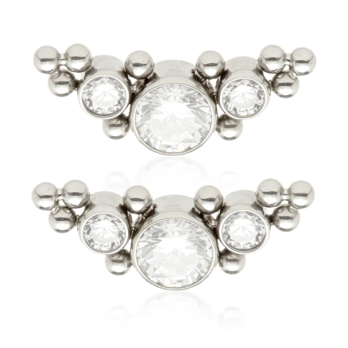 Titanium Threadless Stud Earrings with Triple Gem Curve Attachment (Pair)