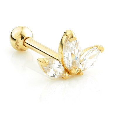TL 14 Carat Gold Jewelled Fleur-de-lis Cartilage Bar