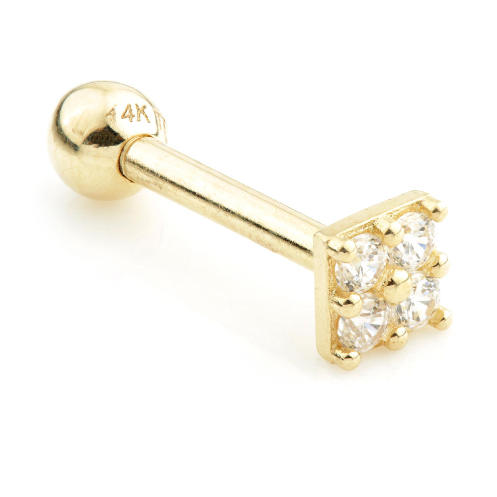 TL - 14 Carat Gold Jewelled Mono Square Cartilage Bar